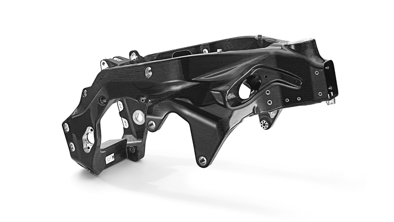 Die BMW HP4 hat ein Gewicht von 171 kg, nein ausnahmsweise kein Schreibfehler vorhanden, dies Fahrfertig und vollgetankt. Das heisst sie liegt unter dem Gewicht der Superbikemaschienen und nur ganz knapp über den der Moto GP Maschinen. Die Yamaha M1 von Valentino Rossi und Maverick Vinales zum Beispiel, wiegt 158 kg. Wie ist das möglich? BMW fertigte den Rahmen aus einem Material, welches noch kein Motorradhersteller verwendet hat zur Fertigung des Rahmens. Der Rahmen wurde vollständig aus Carbon gefertigt. Somit kommt BMW auf ein Rahmengewicht von 7.8kg. Auch die Räder sind aus Carbon auch hier redet der Hersteller von einer Gewichtsreduktion von bis zu 30%.