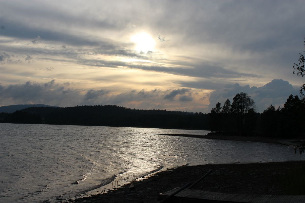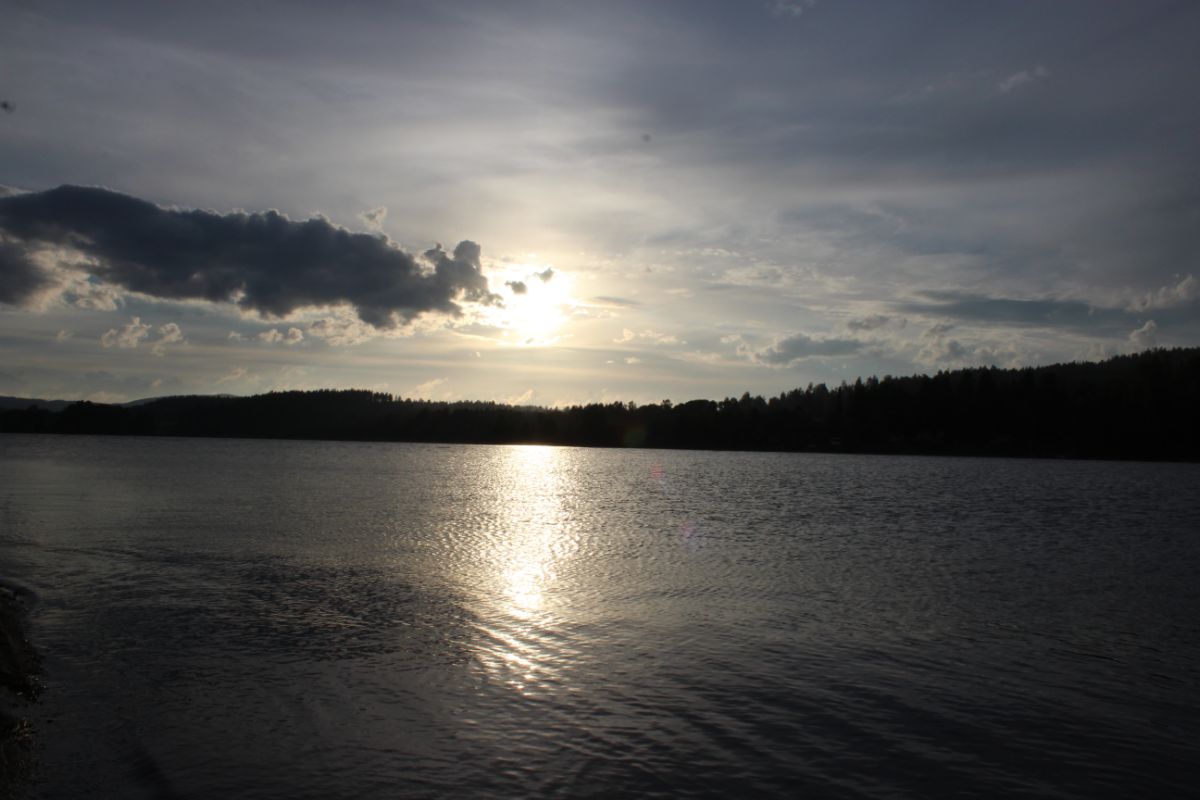 Am Morgen ging es zuerst über Land. Aber die Kilometer wollen nicht weniger werden und ich möchte so schnell wie Möglich am Nordkapp sein, damit ich das gute Wetter noch erwische. Also fuhr ich kurz vor Mittag auf die Autobahn, die Kilometer werden weniger aber es sieht alles genau gleich aus. der erste Lichtblick, das Mittagessen, es gab Kedok mit Moos. Wurst mit Kartoffelstock, dazu eine Schrimpssauce, herrlich, die gute Laune war wieder da. Abends ging es dann auf einen wunderschönen Zeltplatz mit Seeanschluss. Endlich Baden, den es hatte um 19:00 Uhr noch gegen die 24 Grad. Mit fotografieren und schwimmen rundete ich dann den Tag ab und ging früh ins Bett.