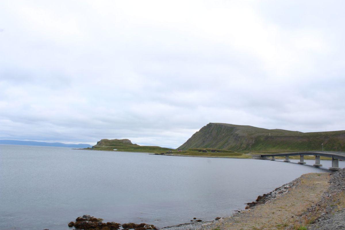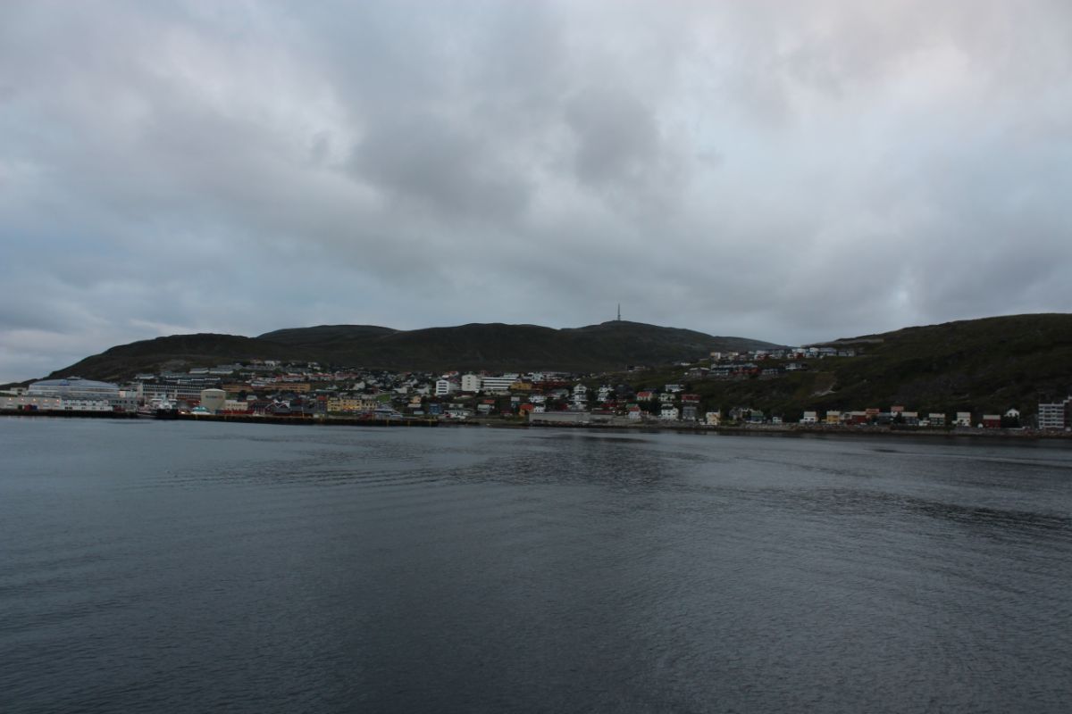 Die Landschaft wurde sehr Tundraartig und es regnete bei 8°C, was man sehr wahrscheinlich an meiner Motivation merkte. Als ich dann aber kurz vor der Grenze mit einem einheimischen ins Gespräch kam und dann noch die Finnische Grenze überfuhr stieg die Laune wieder. Bald war ich in Norwegen und es wurde hügeliger, an diesem Tag wär ich um 18:00 Uhr am Nordkapp gewesen. Aber ich wollte mir den Stress nicht antun und fuhr nach Hammerfest, dies liegt auf der Insel Kvaloga und ist vom festland aus über eine brücke zu erreichen. Hammerfest leigt direkt am europäischen Nordmeer. Als das Zeltaufegestellt war und ich eine warme Dusche nehmen konnte, ging ich in die Stadt. Zur Belohnung gab es einAnchtessen in einem restaurant. Von aussen sah es etwas versift aus, innen ganz cool eingerichtet so wie eine fischerbar. Nach dem ich die "Most popular" Pizza gegessen habe, drank ich noch einBier an der Bar und quatschte mit einem Einheimischen. Er erzählte mir, dass es hier oben vor zwei Wochen noch 32 Grad war, jetzt sind es noch um die 10. Unglaublih, er hätte das sein ganzes Leben, es sah so aus als wäre dies ein langes gewesen, noch nie erlebt. Noch einmal schlafen und dann gehts ans Nordkapp.