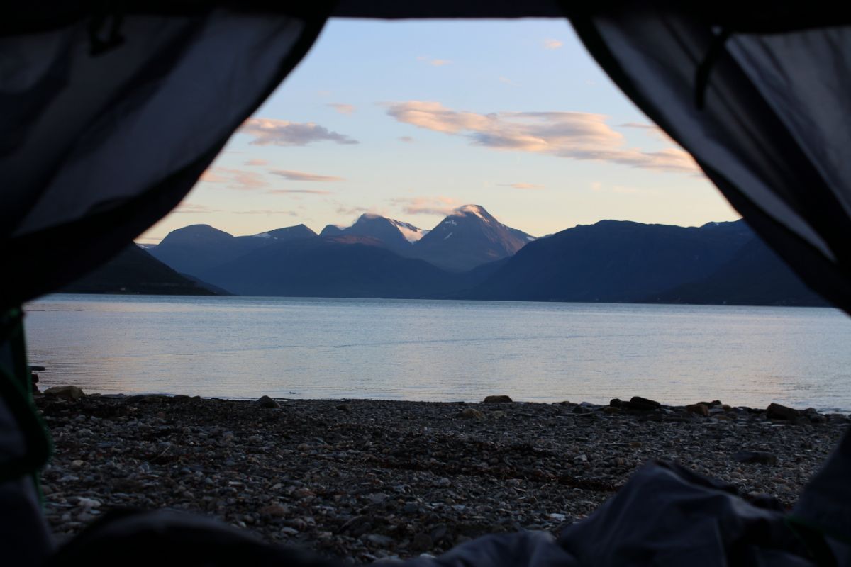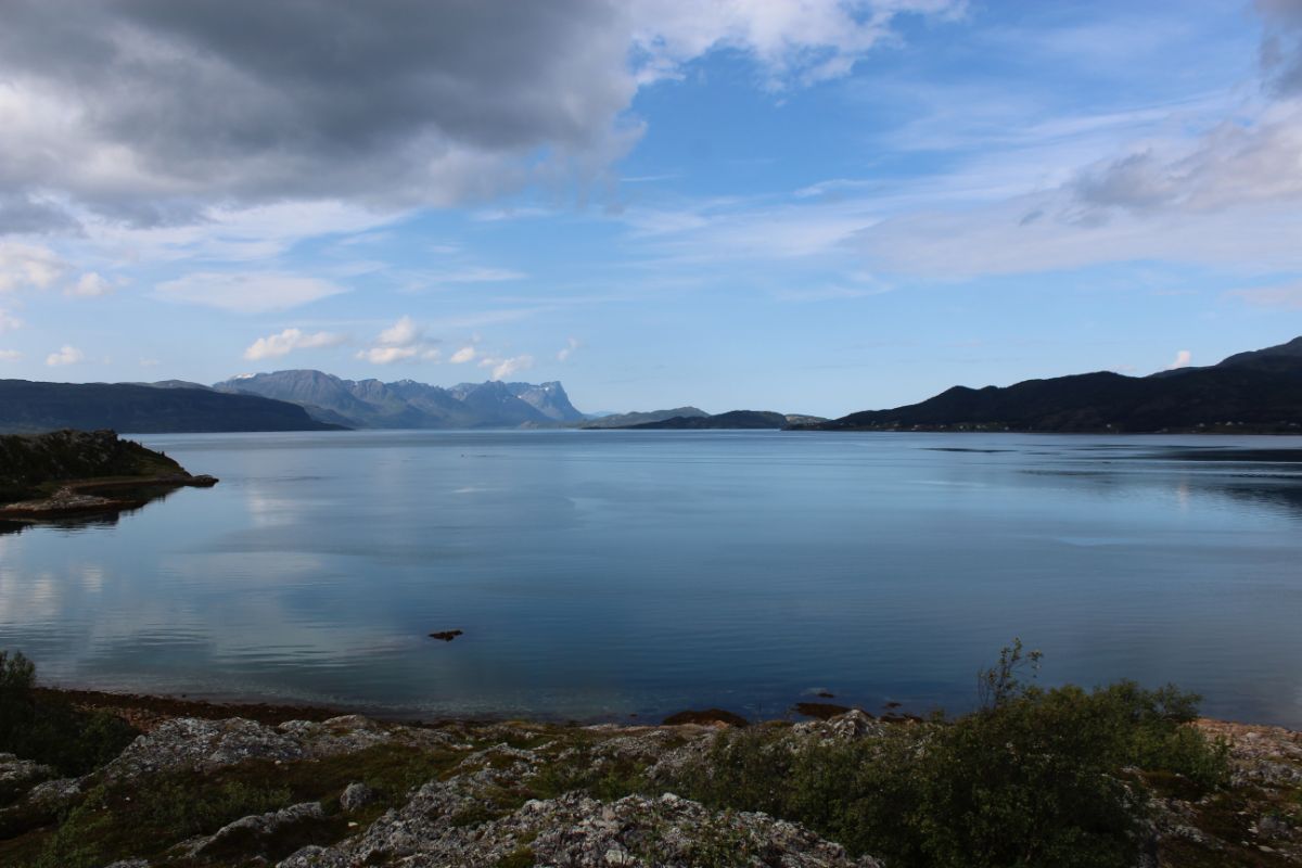 Am Abend übernachte ich an einem wunderbarem fjord, kuz vor dem Dorf Storfjord. Hier heisst alles Blablabla-fjord. Es ist wunderschön, man sieht Schneeberge, Gletscher und ist gleichzeitig an einem strand. Während ich mein Zelt aufbau kann ich wahle beobachten, leider waren sie zu weit weg um sie fotografieren zu können. Der ganze Tag war trocken ausser als ich Zelt lag fieng es an zu regnen.