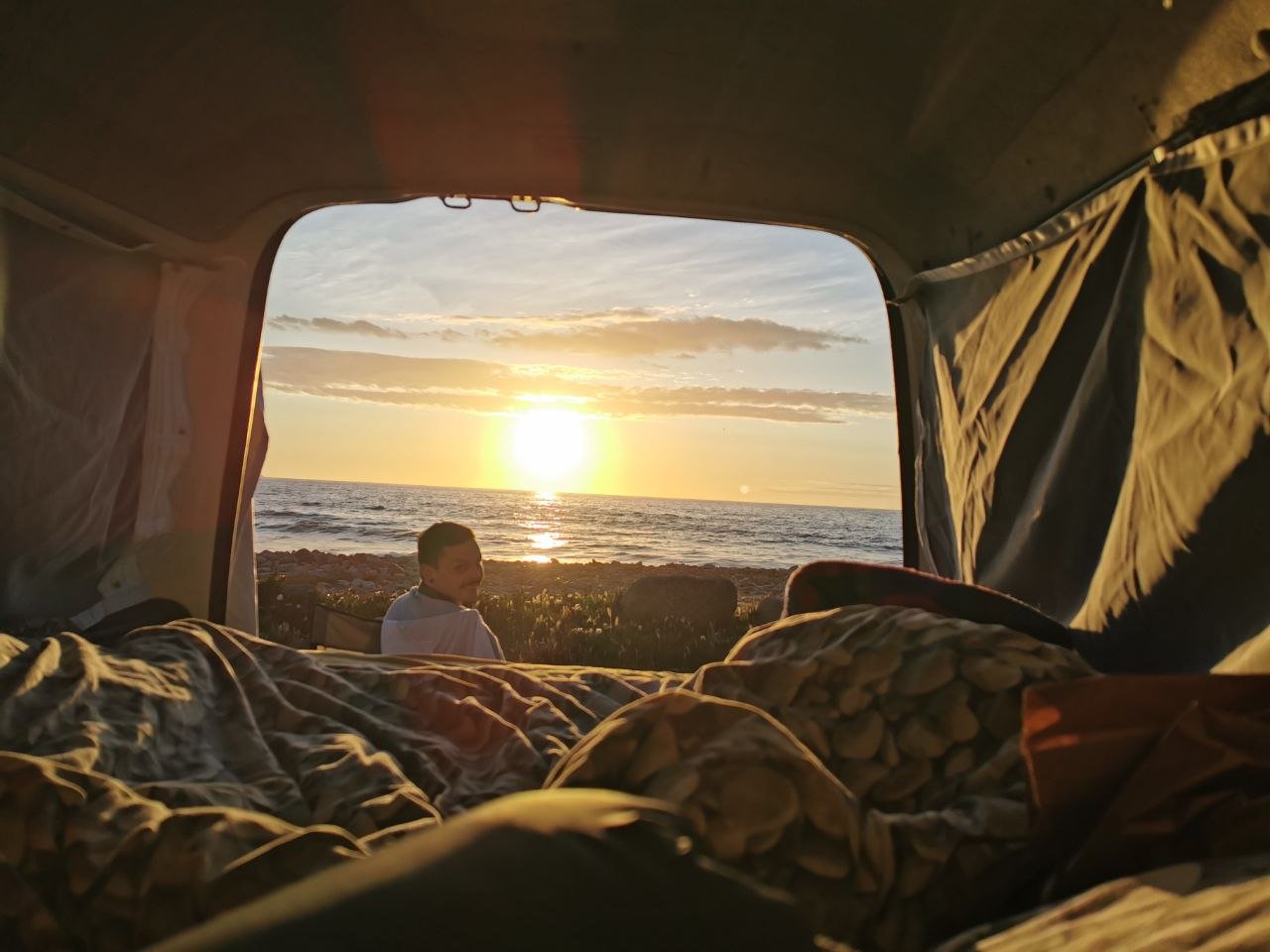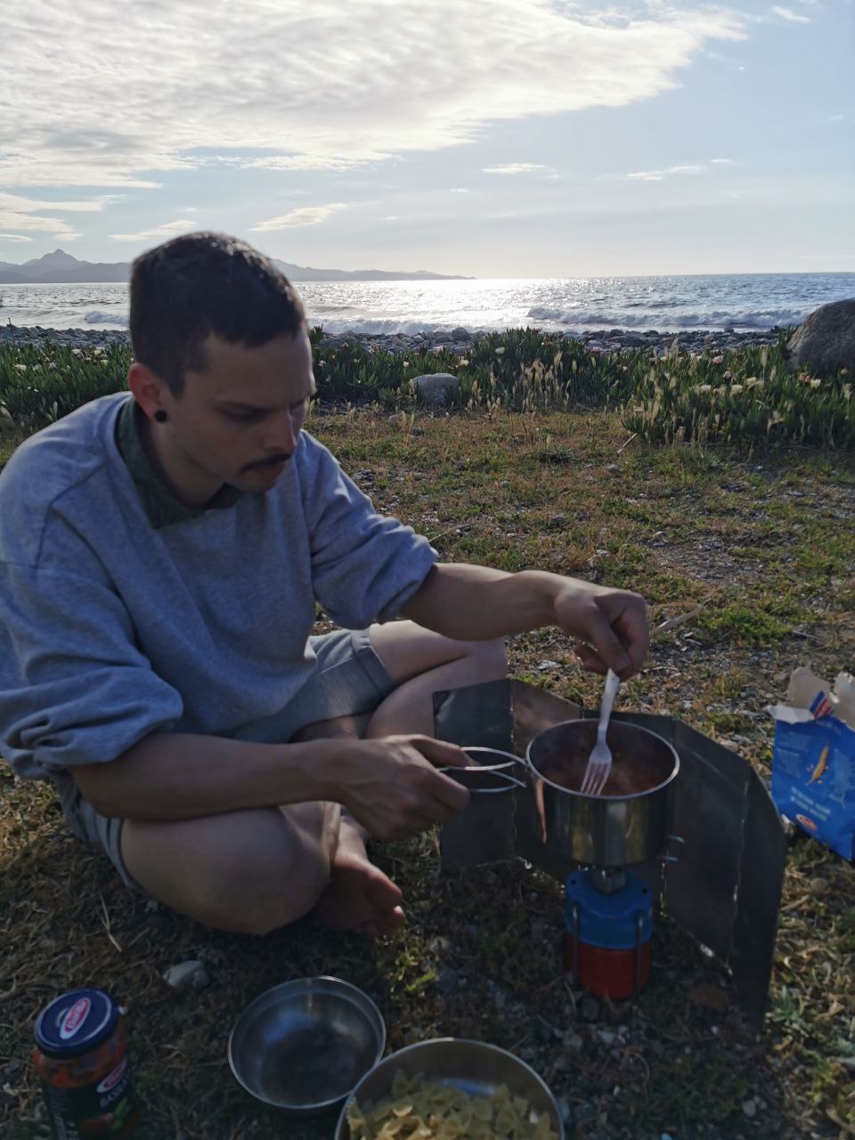 Die erste Nacht verbrachten wir dann in einem Camping direkt am Meer. Camping A Stella hiess es da. Die Googel Rezessionen war viel schlechter wie die Realität und nicht das letzte Mal. Ja die Toiletten waren alt und das Duschwasser kalt aber man zahlte 17 Euro und konnte direkt am Meer parken. Hier ist wichtig zu erwähnen, dass die Saison erst etwas um den 15.5. begann also nach unseren Ferien. Was wir an diesem Abend auch am Wetter zu spüren bekamen, ohne Pullover war es viel zu kalt.