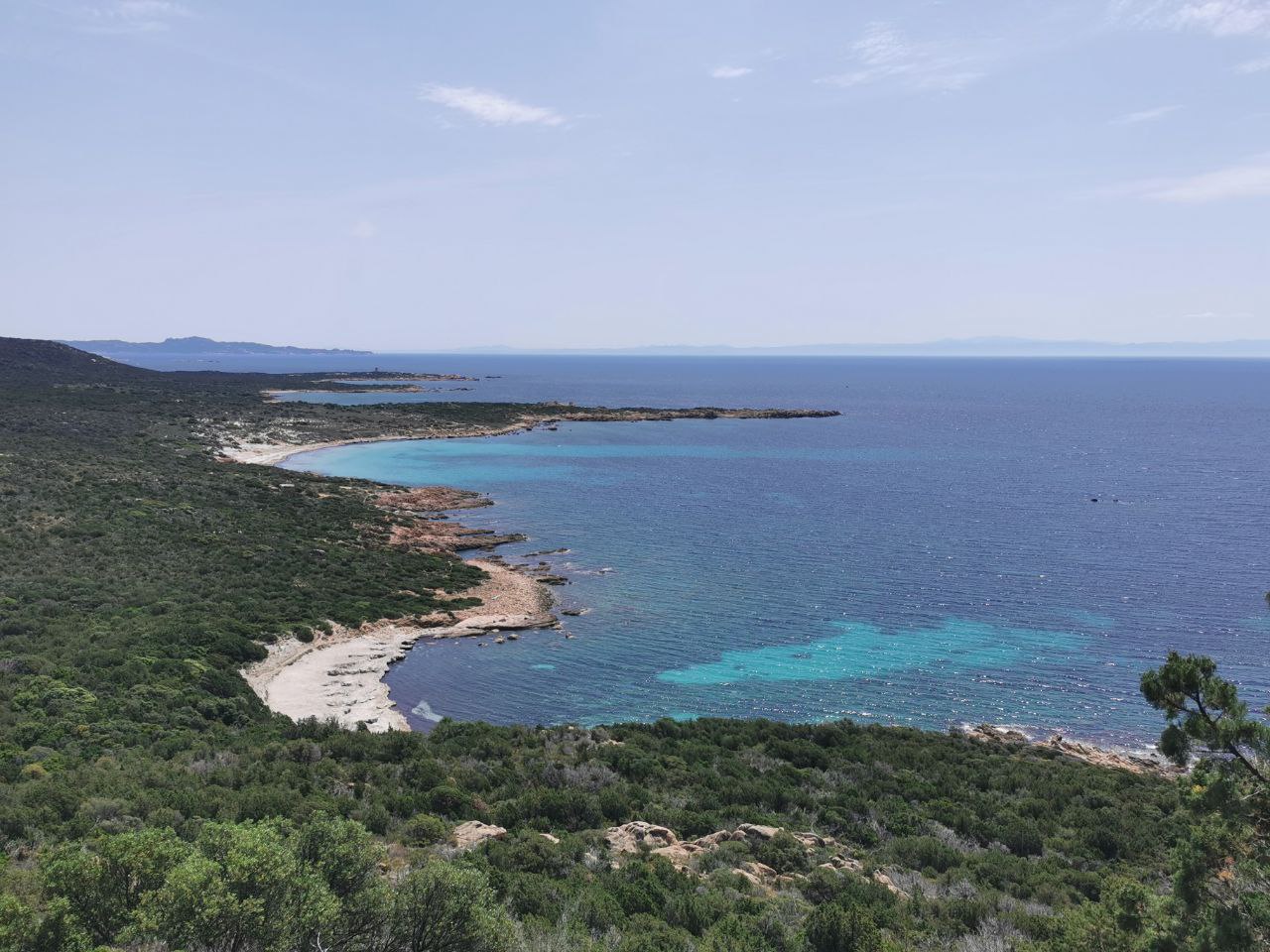Als Vorbereitung speicherte ich einige schöne Orte und Camping auf Google Maps. So konnten wir jeden Tag aufs neue entscheiden was wir sehen wollten. Am zweiten Tag entschieden wir uns für L'Île-Rousse als Tagesziel. Wir hatten für die ganze Insel 10 Tage Zeit und konnten uns Zeit lassen. L'Île-Rousse ist ein kleines Dorf mit einer kleiner Halbinsel ins Meer hinaus. Klein und niedlich. Zum Mittagessen hatten wir hier die Besten Muscheln der ganzen Tour. Im Restaurant L'arcubalenu. Danach genossen wir einen feinen Kaffee am weisen Strand bei blauem Himmel und endlich warmen Temperaturen. Abends schliefen wir im Camping Les Oliviers. Wie der Name schon verrät, der Camping befindet sich unter unzähligen, alten Olivenbäumen. 10 Minuten vom Strand konnten wir so unser Auto im Schatten und mit Strom für 15 Euro parkieren. Wie jeden Tag gab es ein Zviere manchmal unterwegs, oder wie an diesem Tag schon auf dem Camping. Wir kauften im nahegelegenen Spar eine korsische Salami die von aussen nicht sonderlich appetitlich aussah, dafür umso besser schmeckte. Dazu gab es ein kleines Pietra, das Bier der Korsen. So liess es sich aushalten. Nach dem Nachtessen ging es dann noch an den Strand, den selben den man von L'Île-Rousse aus erreicht, einfach am anderen Ende. Ei war das schön.