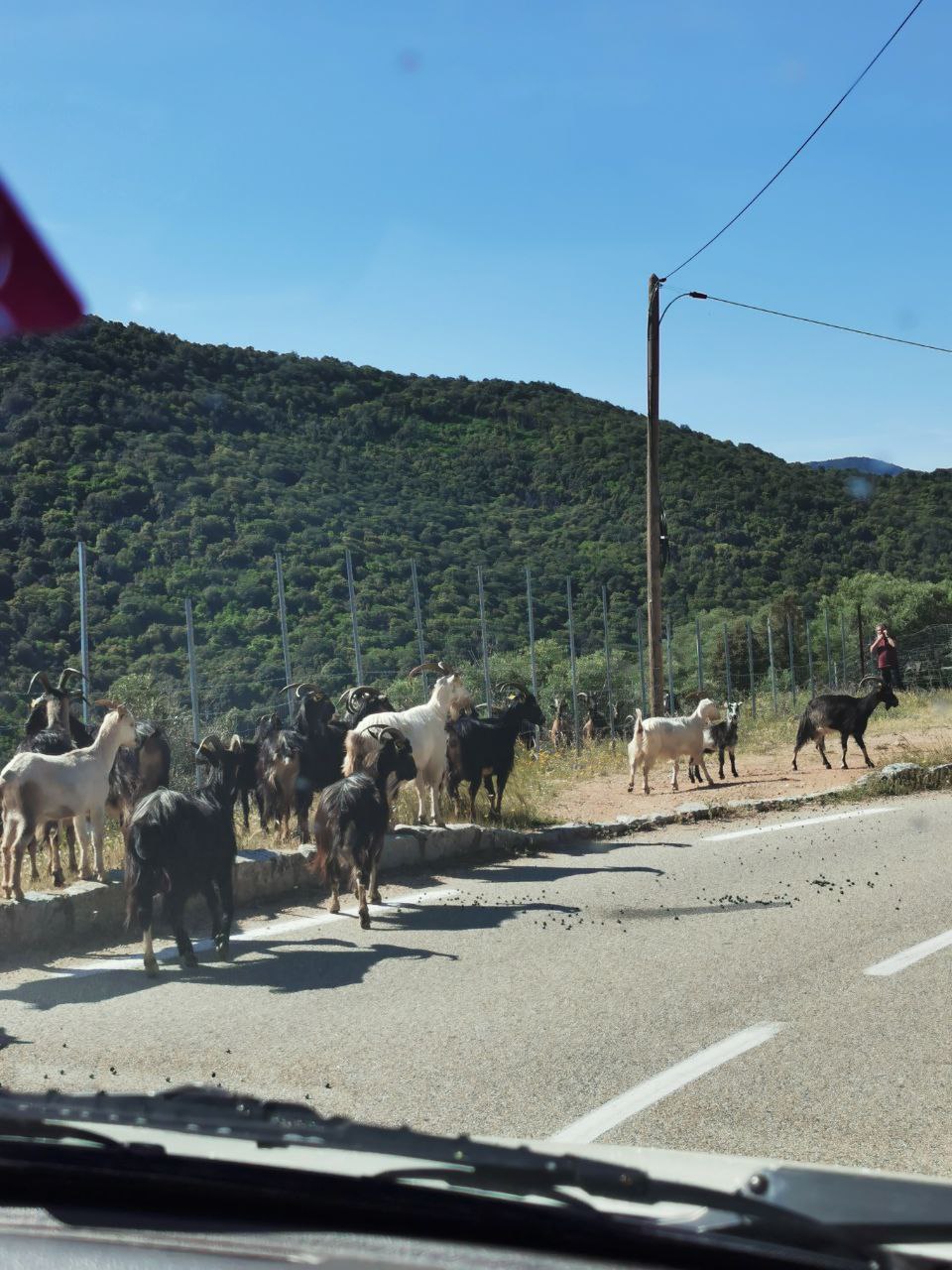 Die Reise begann mit einer langen Fahrt nach Nizza, denn da nahmen wir die Nachtfähre. Ich war mir von meinen Motorradtouren gewohnt, irgendwo in einer Ecke oder in einem dafür vorgesehenen Konferenzraum, am Boden zu schlafen. Zum Geld sparen entschieden wir uns auch dieses Jahr dafür. Da wir nicht in der Bar auf den bequemen Sessel schlafen durften, ging schon bald die grosse Suche nach dem geöffneten Konferenzraum los. Dort angekommen richteten wir uns in einer Ecke mit unseren Decken ein. Doch bevor wir versuchten zu schlafen genossen wir noch bei einer Tasse Rotwein den Blick zu den Sternen. Die Nacht war dann weniger romantisch, das Schiff schwankte stark und machte quietschende, angsteinflössende Geräusche. Kurz ich fand nicht gerade viel schlaf. Um sieben Uhr morgens wurden wir dann auch unglaublich freundlich geweckt, mit einem lauten „good morning“ geweckt. Um acht waren wir dann auch schon an Land, in Bastia und die Reise begann. Ohne einen Zwischenstopp in Bastia fuhren wir gleich los in Richtung Cape Corse. Das ist der nördlichste Punkt von Korsika. Wenn man nicht gerade ein Wohnmobil hat dass grösser wie eine Dreizimmerwohnung ist, dann kommt man auf diesen Strassen ganz gut durch und kann einfach nur geniessen. Links sind Felsen, rechts das Meer und vor einem unendlich viele schöne Kurven. Natürlich vermisste ich hier und da mein Motorrad.
