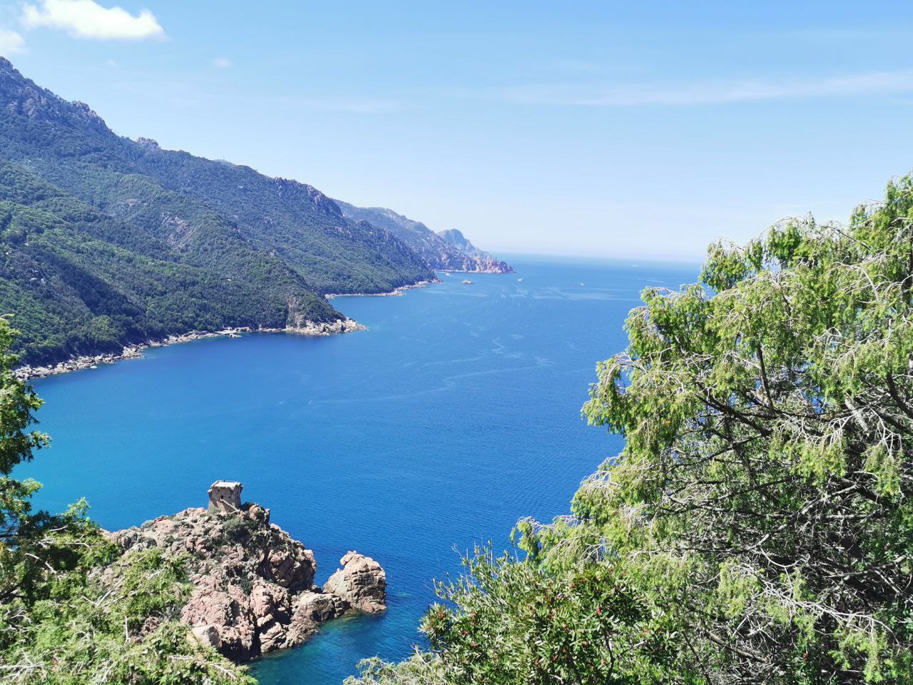 Der alt bekannte Ort kam immer näher und es fühlte sich für mich immer mehr wie ein zurück kommen an. Es handelt sich um den Ort Porto. Auf meiner Europatour 2018 war hier einer der einzigen noch offenen Campings, der Sole e Vista Camping. 2018 war ich am Ende von meiner Tour in Korsika, ich hatte den Reisekoller und verbrachte ein paar Tage auf dem Camping Sole e Vista mit Karten und Tagebuch schreiben und mit baden. Nun waren wir wieder hier und ich konnte meiner Freundin diesen mir vertrauten Ort zeigen, hmm darüber freute ich mich sehr. Der Camping befindet sich am Hang und man hat eine wunderbare Aussicht. So blieben wir auch dieses Mal zwei Tage. Unten in der Bucht gab es viele Restaurants, ganz herzig. Am zweiten Tag versuchten wir eine Rundwanderung zu machen, denn die Berge hier laden zum wandern ein. Wir erwischten den falschen Weg und mussten so den gleichen Weg wieder zurück gehen, schön war es trotzdem. Den Nachmittag liessen wir am Strand ausklingen. Zum richtig baden war es jedoch zu kalt, für schnell rein und raus reichte es jedoch. Die Kletterer an den Felsen schienen mehr Spass an dem sonnigen Wetter zu haben. Von 2018 gab es ein Foto in einer Ausweichbucht mit Valentina, die Yamaha XSR 700 die mit mir damals unterwegs war. Dieses Foto stellten wir nach den zwei Tagen mit dem Caddy nach, als es weiter ging in Richtung Süden....