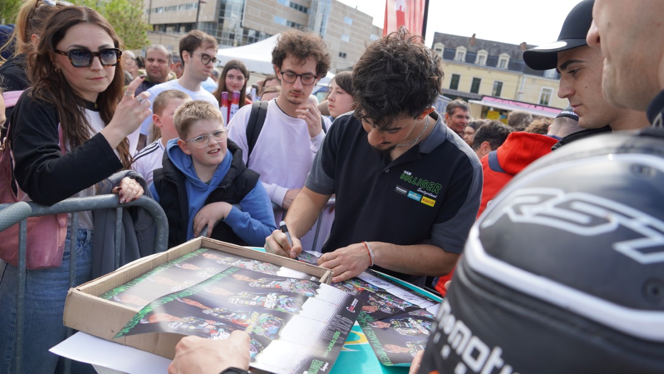 Heute ist kein Fahrbetrieb, die Motorräder bleiben stehen, und andere Klassen wie die Seitenwagen können auf die Rennstrecke. Das heisst aber nicht, dass es nichts zu tun gibt. Auf dem Plan stehen die technische Abnahme und die Parade in der Stadt Le Mans. Gleichzeitig wird alles für den morgigen Test und das Rennen vorbereitet.