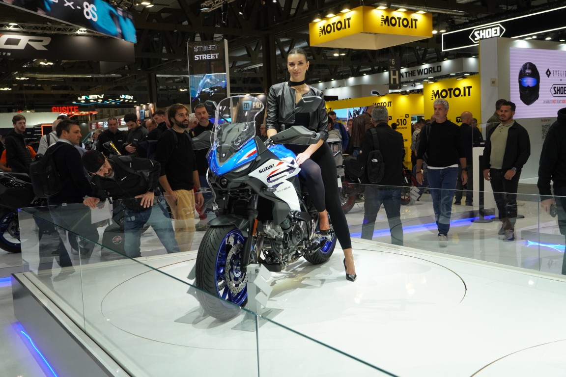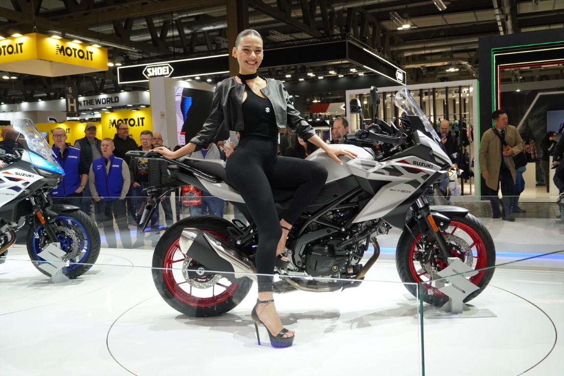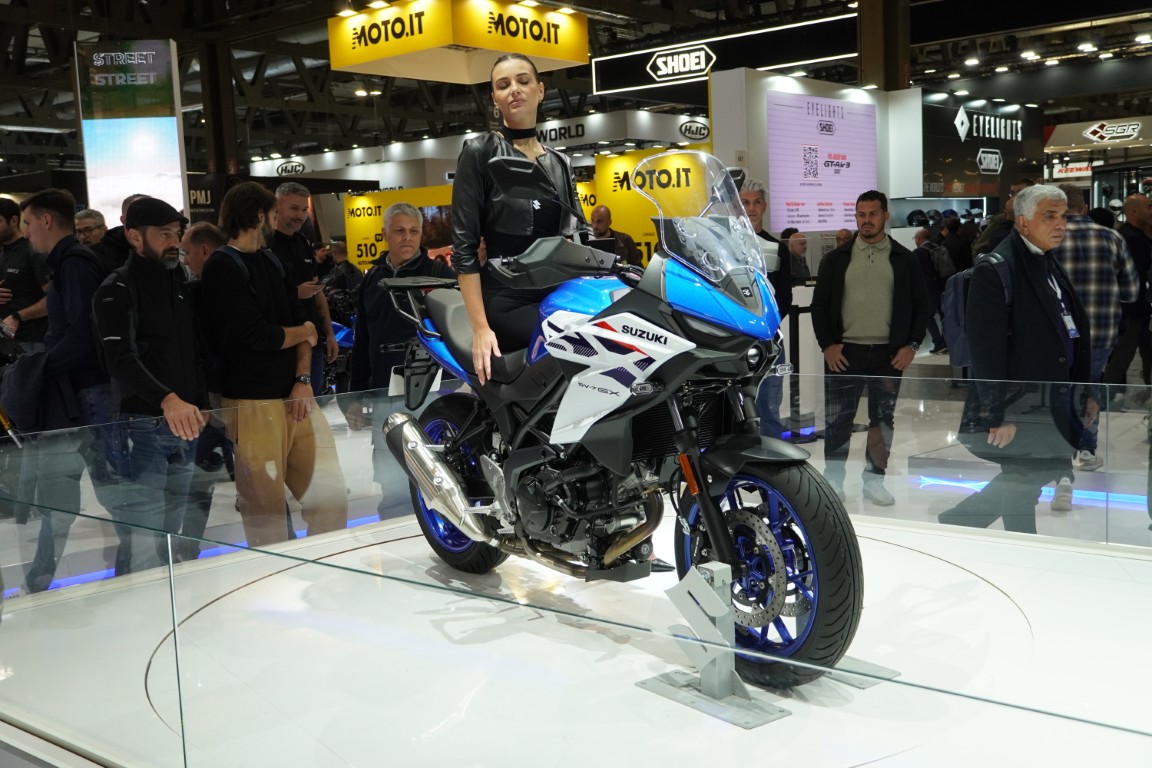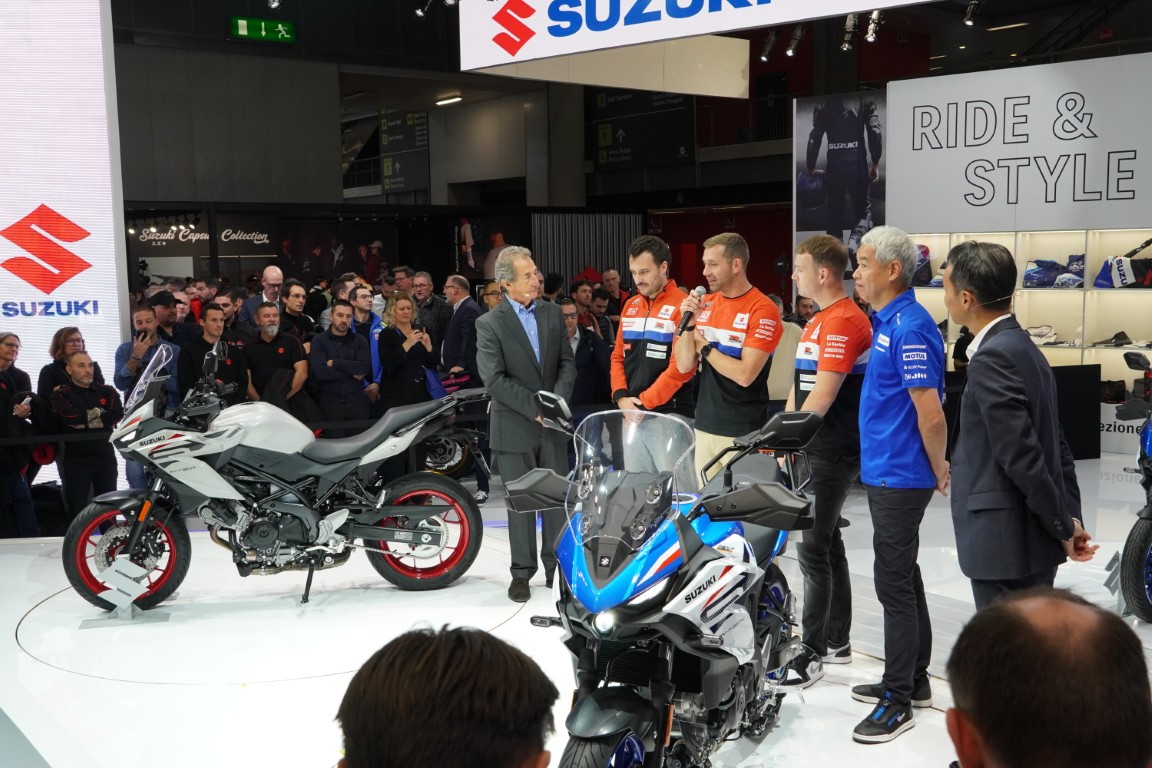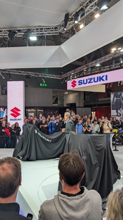 Am Dienstag um halb zehn war unser erster Termin: die Präsentation bei Suzuki. Klar war, dass die neue GSXR 1000 da stehen würde, denn diese wurde noch während der Langstreckensaison in Suzuka vorgestellt. Trotzdem waren mehrere Motorräder abgedeckt. Nach ein paar Worten von Rennfahrern, aber auch Verantwortlichen von Suzuki, unter anderem Herr Suzuki, war es dann so weit. Die Tücher wurden entfernt und die neue Suzuki SV-7GX stand da – die kleine Schwester der Suzuki GSX S1000GX. Der Motor ist auch nicht ganz unbekannt; es ist die überarbeitete Version der SV 650er. Suzuki meint dazu: Kraftvoller V Twin Motor – flüssigkeitsgekühlter 645 cm³ 90° V Zweizylinder mit Ride by Wire, SDMS Fahrmodi und bidirektionalem Quickshifter für ein sanftes, lineares Drehmoment.