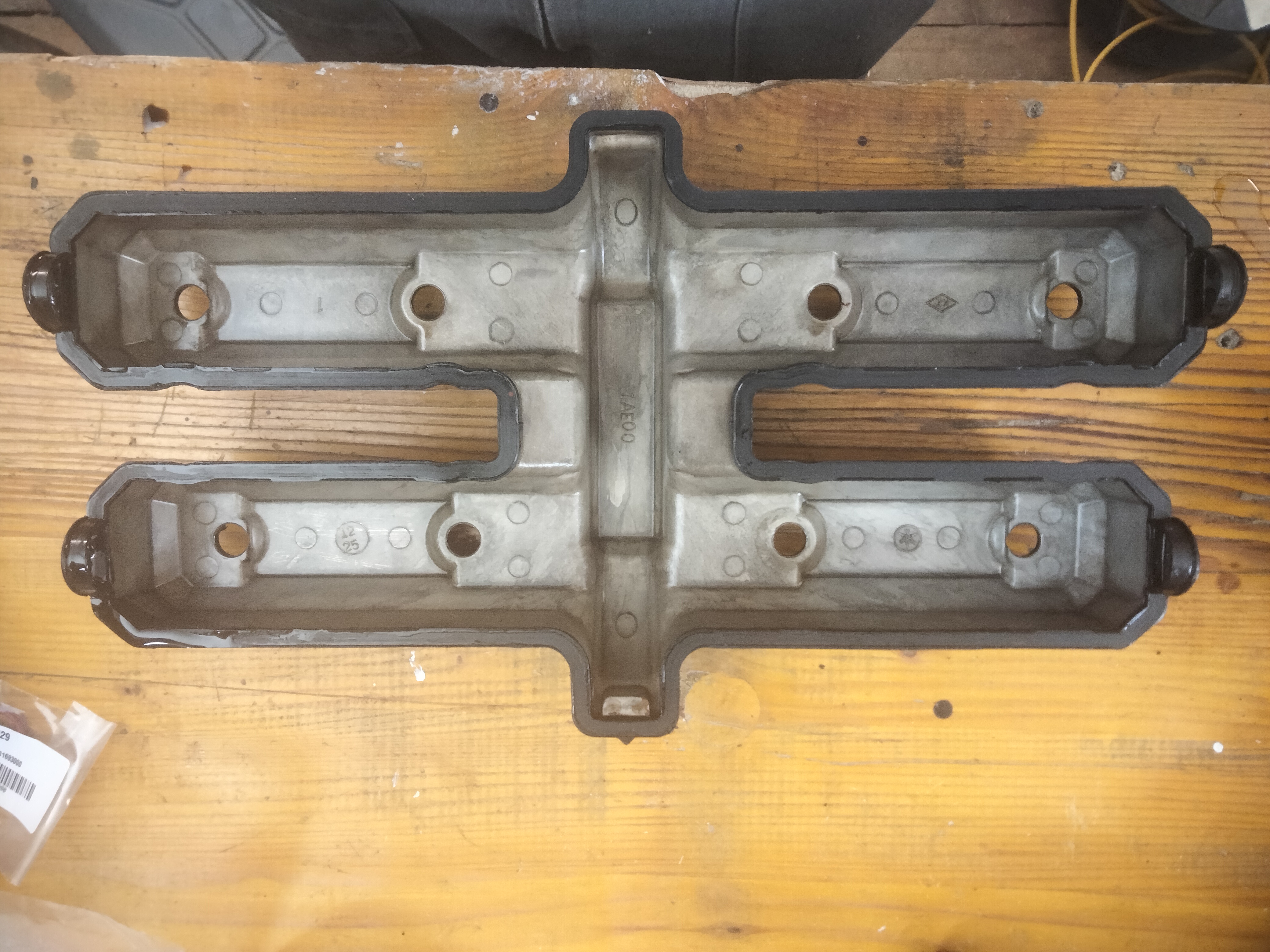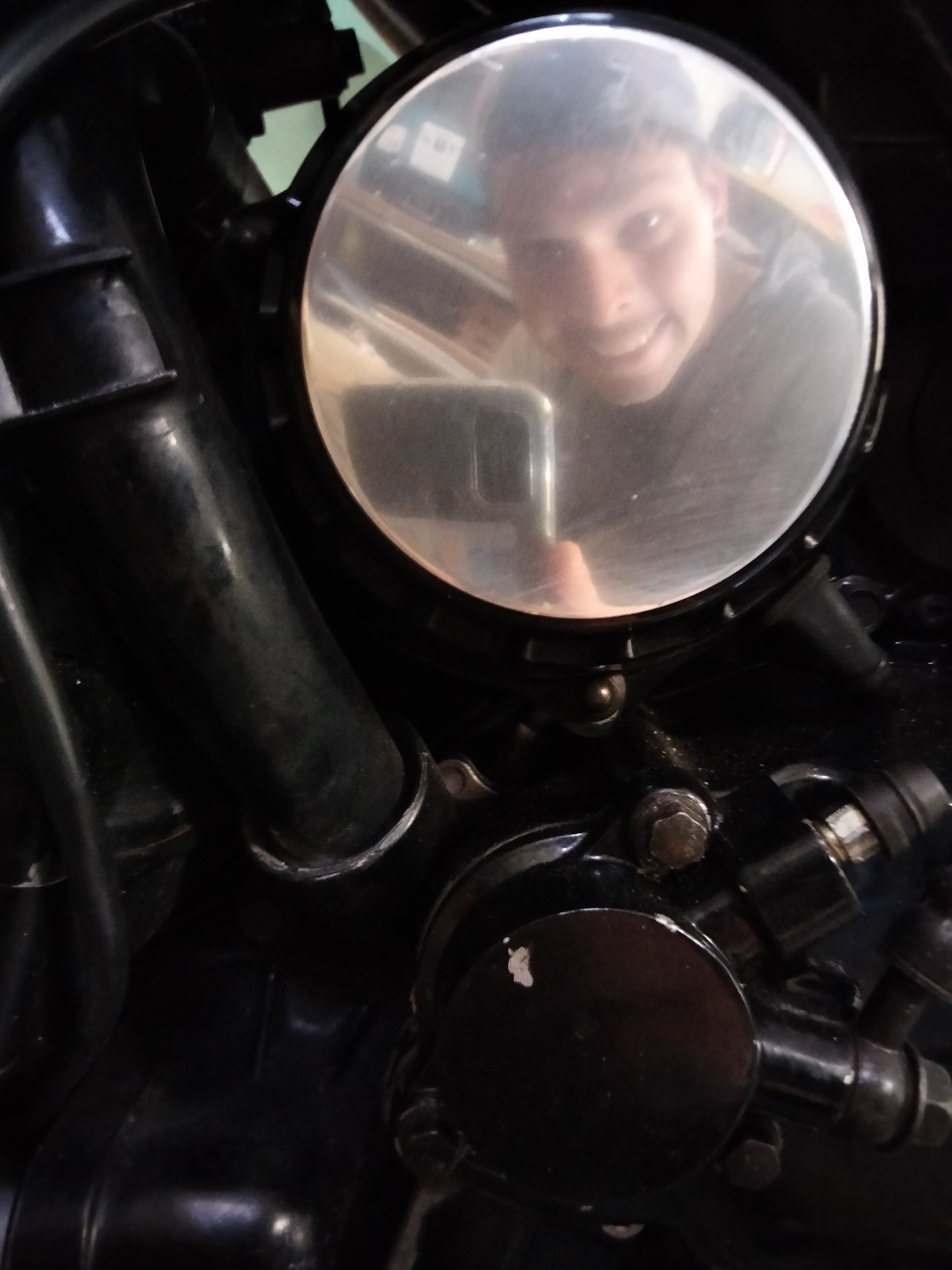 Nun musste nur noch der Zylinderkopfdeckel demontiert werden, neue Dichtung drauf, Zylinderkopfdeckel wieder montieren und neues Öl nachfüllen. Nur... Damit der Zylinderkopfdeckel demontiert werden kann, muss der Kühler weg. Da gibt es zwei Schrauben, links und rechts oben, die fühlt man knapp aber sehen kannst du sie nicht. Der Tank und Luftfilterkasten muss nicht demontiert werden, das kann ich euch als Erfahrungswert mitgeben. Als ich den Zylinderkopfdeckel endlich entfernen konnte fand ich auch gleich eine, schon länger, vermisste Nuss.