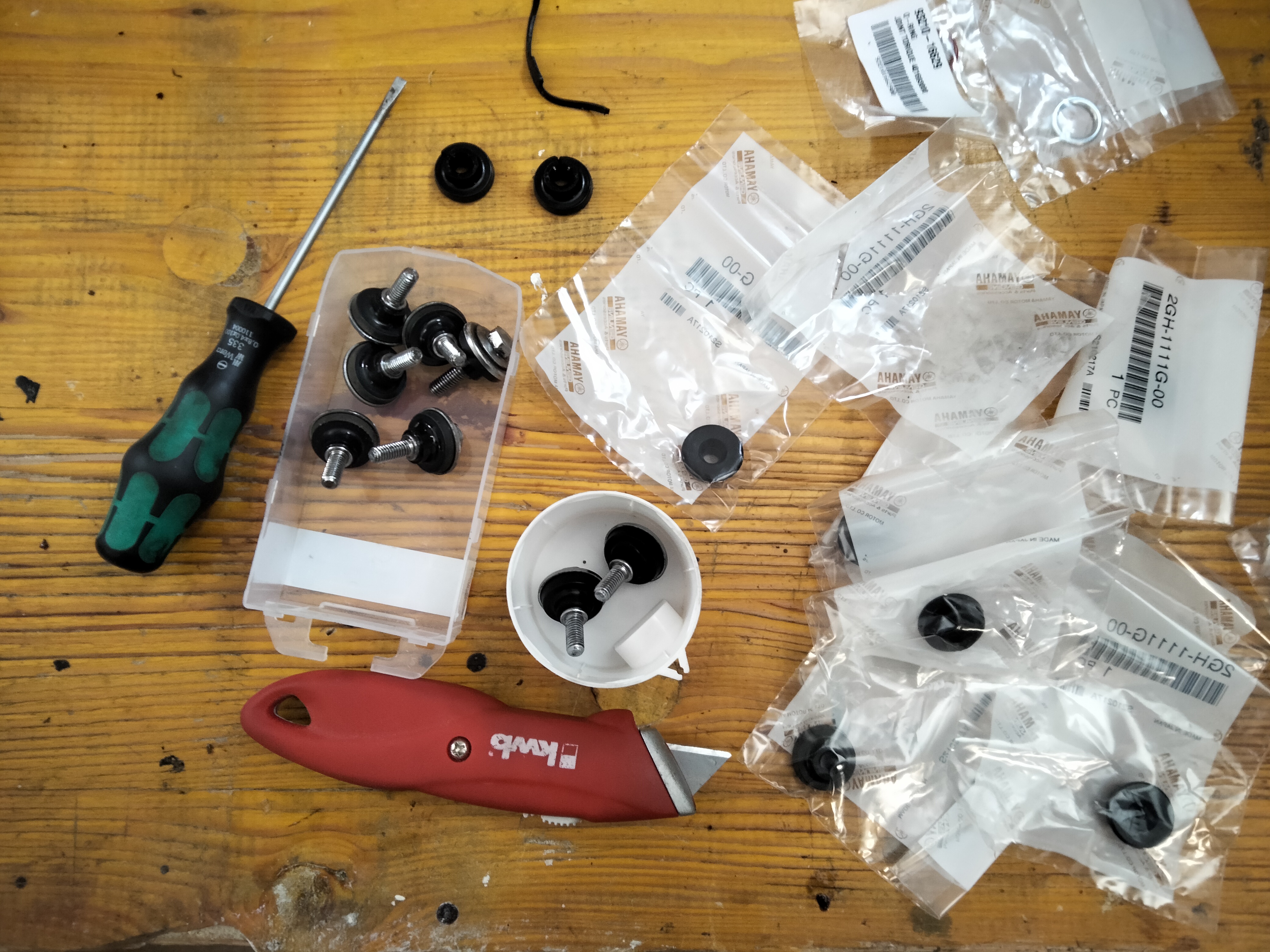 Eine kurze Mail an Mathys Motos, an den Yamaha-Händler meines Vertrauens, und die neue Dichtung waren bestellt. Zwei Tage später konnte ich die Teile in Füllinsdorf in der Werkstatt abholen. Ein herzliches Dankeschön an Mathys Motos an dieser Stelle!