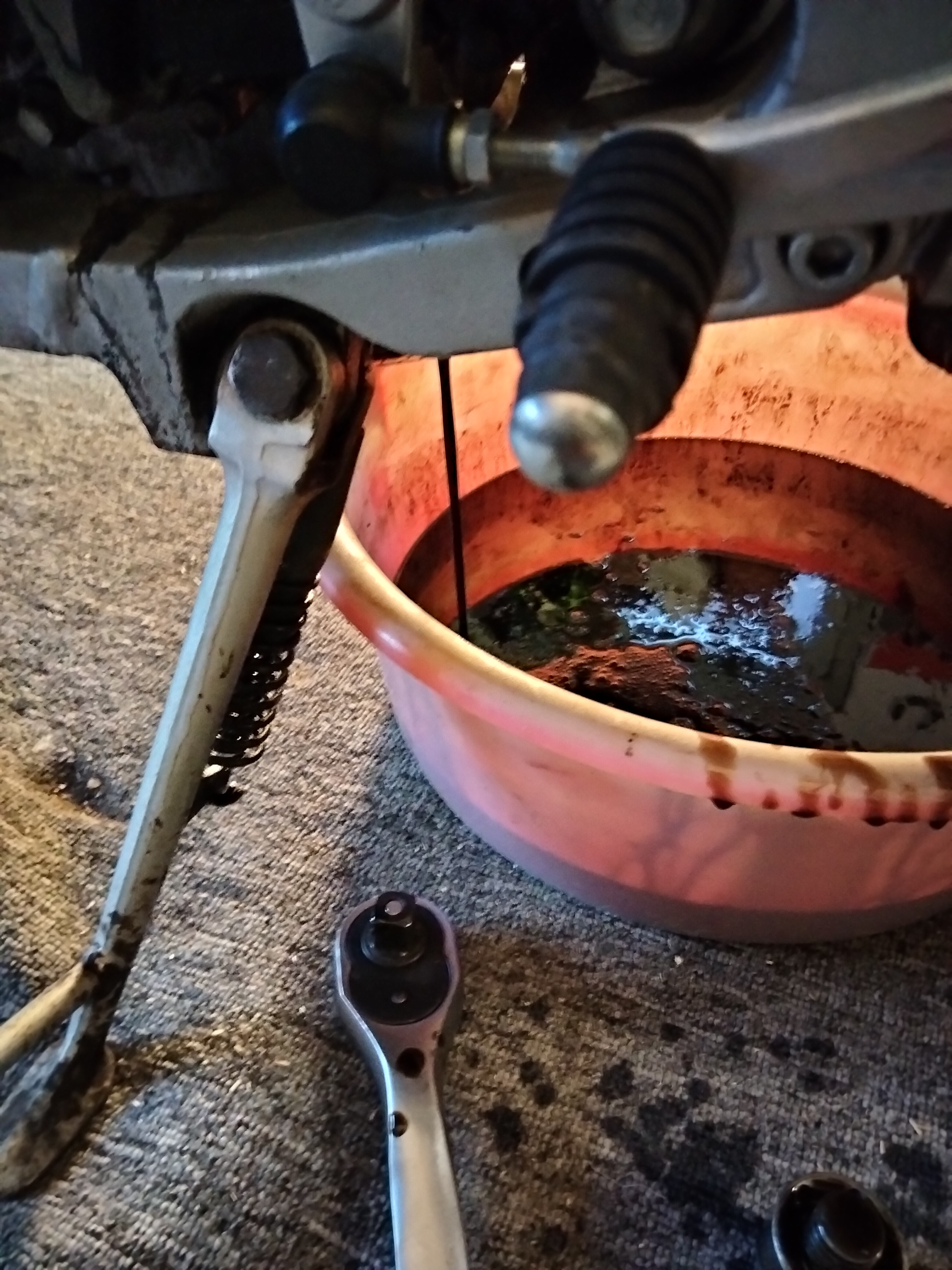 Nun waren noch nicht alle Flüssigkeiten erneuert, es fehlte noch der Ölwechsel. Dies verlief jedoch ganz einfach. Ölablasschraube entfernen, Ölfilter entferen, warten bis das Öl abgelaufen ist und dann denn neuen Ölfilter montieren und neues Öl nachfüllen.