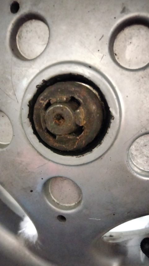 5.Radmutter: Wenn der Auspuff demontiert ist, sieht man eine Abdeckung die nicht wirklich mit irgendeinem Werkzeug bearbeitet werden kann. Dies ist nur eine Abdeckung damit die Splinte die Mutter fixieren kann. Nach dem die Splinte entfernt ist, kann diese Abdeckung mit einem Schraubenzieher entfernt werden. Dies ging sogar bei meiner Vespa recht einfach. Danach kann die darunter liegende Mutter entfernt werden und man hat endlich das Hinterrad in der Hand.