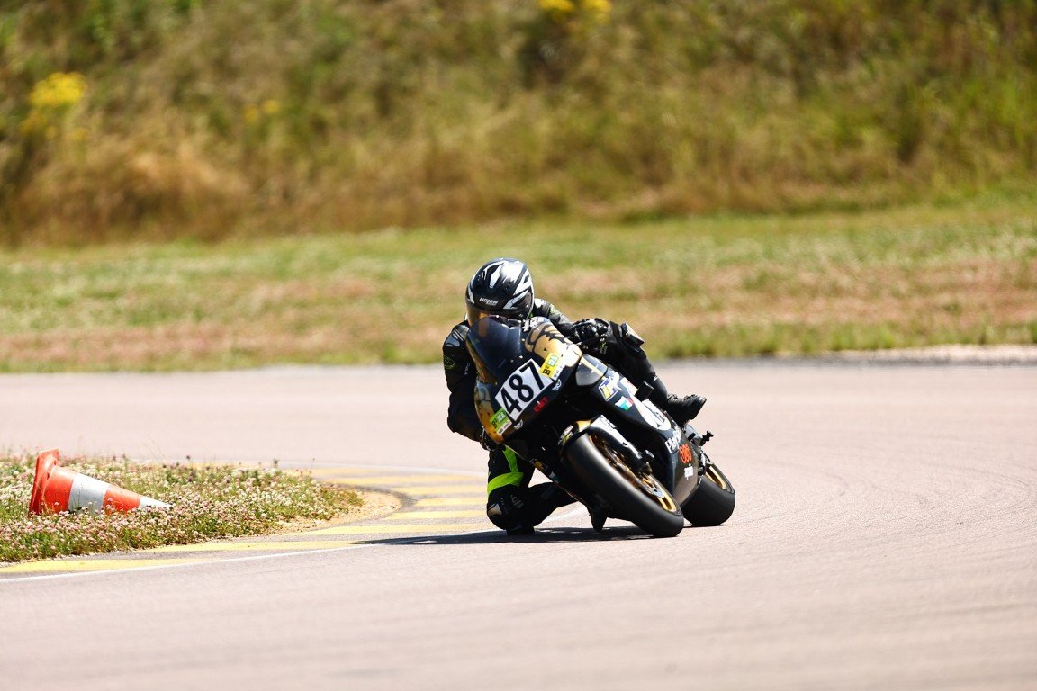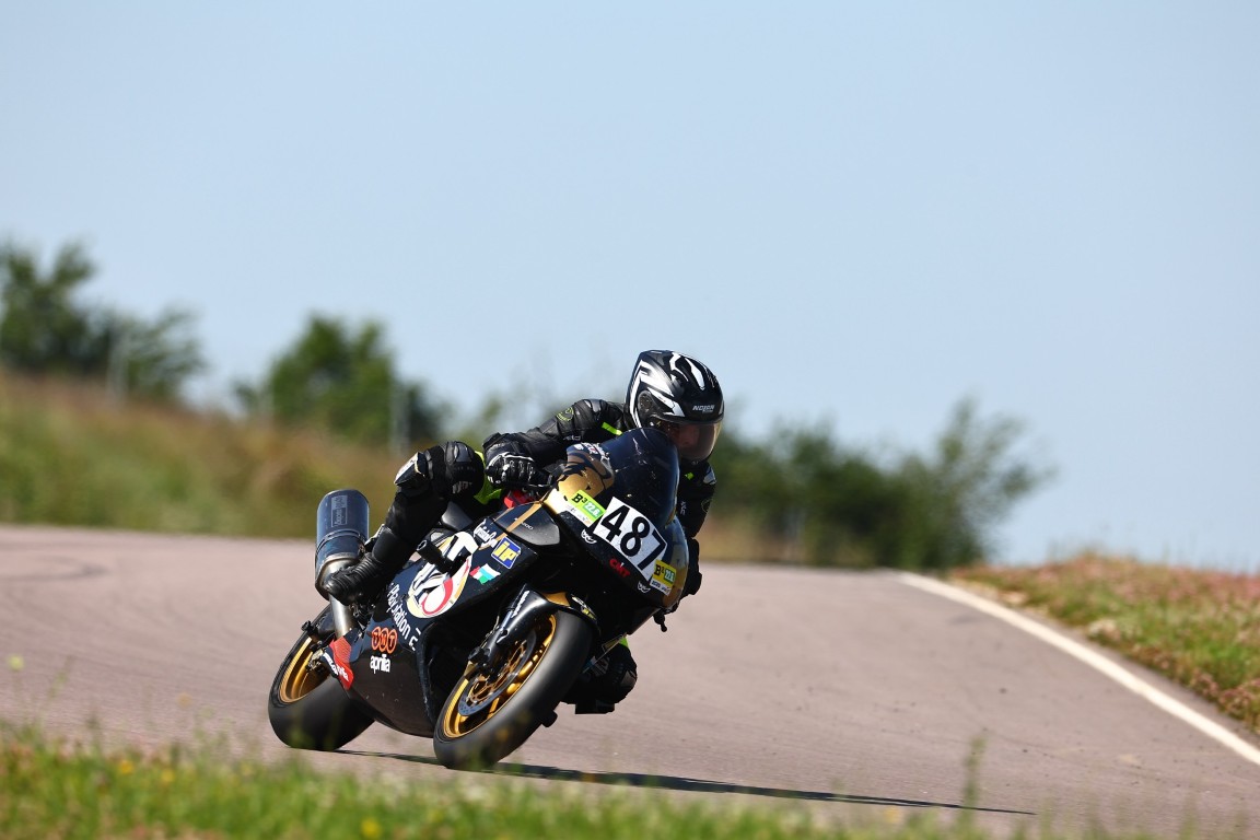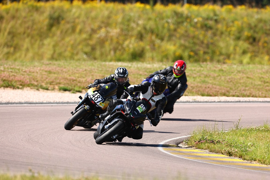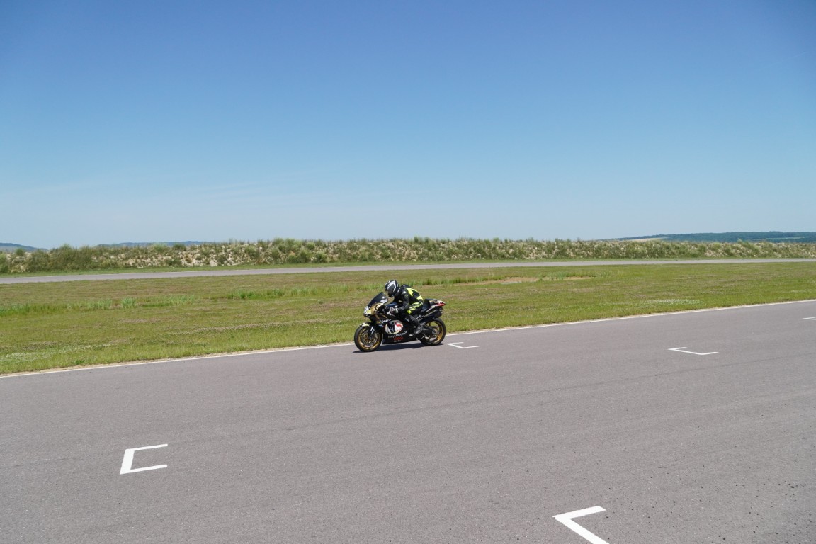 Dann ging es weiter mit den Nachmittags-Turns, die aus Zeitgründen teilweise auf fünfzehn Minuten verkürzt wurden. Ich konnte mich immer weiter verbessern, und irgendwann kamen sogar die Knieschleifer zum Einsatz. Auf den langen Geraden wurde ich immer seltener überholt. Das lag einerseits an meinem Können, aber auch an einem Tipp von Joel: Er meinte, ich solle doch Ohrstöpsel tragen. Dann höre ich das Motorrad nicht mehr so laut und fahre dadurch schneller. Es half tatsächlich so gut, dass der Tacho schließlich einmal 198 anzeigte. Keine Meilen pro Stunde!