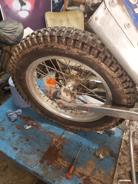 Nach langer Wartezeit, durfte vor ein paar Wochen, mein Trial wieder auf die Bühne. Ich brachte sie wieder zum laufen und ersetzte einige Teile wie Benzinschlauch, Bremsflüssigkeitsbehälter und unzählige Schrauben. Was in meiner Garage nicht oft geschieht, ich verlor mich im Putzen und die Gasgas TXT 280 glänzt nun wieder. Was nun noch fehlt, sind neue Reifen. Die alten sind von 2010 und ziemlich hart. Dies ist bei einem Trial noch schlimmer wie bei einem Strassenmotorrad, denn man fährt mit sehr wenig Druck, 0.2 bis 0.5 Bar, und deshalb braucht man frische und flexible Reifen. Als ich die Reifenbezeichnung aufgeschrieben hatte und begann neue Reifen zu suchen, fragte ich mich was bedeutet dieser ganze Buchstaben und Zahlensalat? Die Bezeichnung für das Hinterrad des Trials wäre: