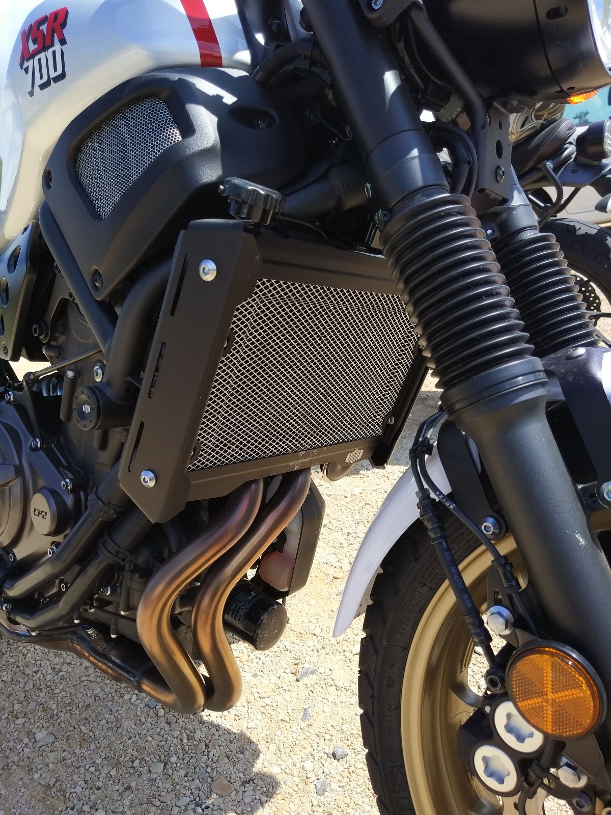 Eigentlich gibt es nur visuelle Unterschiede. Da sind zum Beispiel die Fussraster, sie sind grösser und massiver. Zusätzlich kann der Gummi entfernt werden und so hat man dann Endurofussraster. Dann hat der Kühler ein zusätzliches Gitter davor, dies zum Schutz von Steinen. Dies wäre auf meiner Tour hilfreich gewesen, denn nun sieht der Kühler der XSR700 etwas mitgenommen aus. Natürlich ist auch die ganze Lackierung speziell. Was ich beim fahren aber am meisten bemerkt habe ist der Lenker, er ist ein breiterer und etwas höherer Endurolenker. Für mich fühlte es sich in den Kurven angenehmer und einfacher an. Beim Sitzen merkt man den unterschied auch, mein Sitz hat eine ergonomischere Form, der Sitz der Xtribut ist einfach Flach. Schlussendlich ist es aber eine XSR700 und macht genau soviel Spass. Hier noch der Link desTestberichtes zur XSR 700.