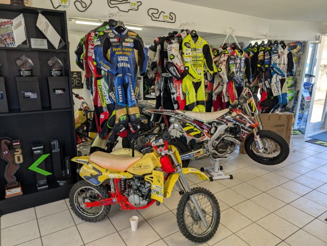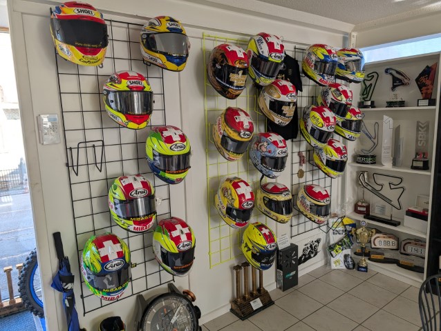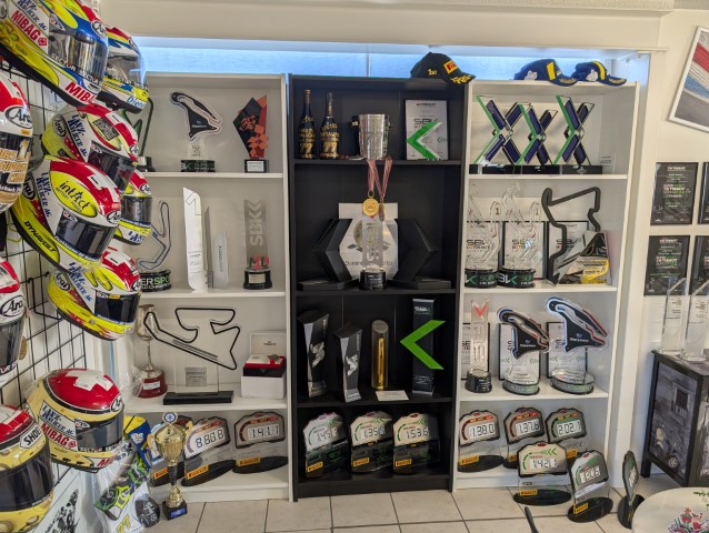 Sie haben bei ihnen im Showroom eine spezielle Ausstellung zu unserem gemeinsamen Jubiläum gemacht. Mit ein paar Pokalen von mir und paar alten Sachen. Es wäre natürlich geil, wenn man das irgendwie mit einem Kombi, mit einem Sepicaldesign feiern könnte, das ist eigentlich eine gute Idee, das könnte ich mal anfragen. Das ist aber immer etwas kompliziert mit den ganzen Team und Yamaha Sponsoren und Marken.
