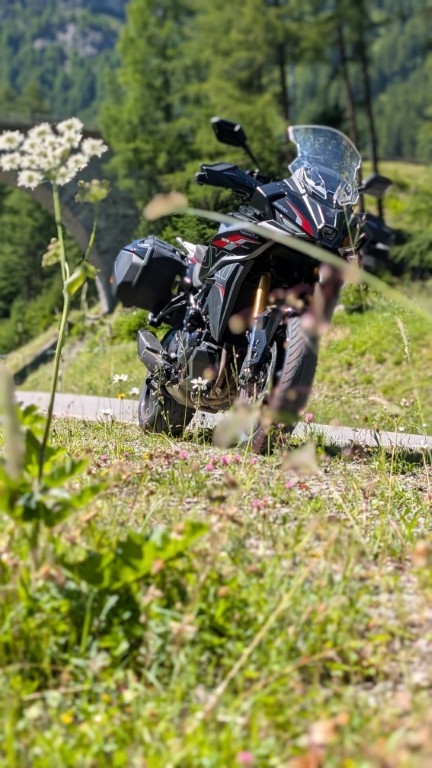 Die Kurven machen mit der Suzuki GSX S1000 GX richtig Spaß. Es gibt drei verschiedene Fahrmodi: A, B und C. A ist aggressiv, C gemütlich. Für die engen Kurven war mir A zu aggressiv, daher nutzte ich den Modus B. Auf der Autobahn oder durch Dörfer fuhr ich im Modus C. Der Quickshifter macht die Fahrt durch die Kurven zu einem echten Genuss. Die Suzuki GSX S1000 GX kann der Suzuki V Strom 1050 mit ihrem Zweizylindermotor problemlos das Wasser reichen. Im Fahrmodus A ist sie angenehm aggressiv, aber es geht auch entspannter.