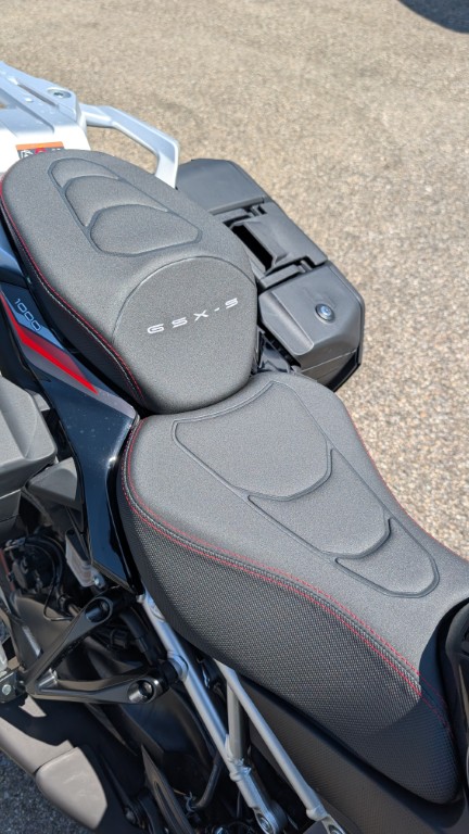 Auf der Suzuki GSX S1000 GX sitzt man aufrecht. Normalerweise schaffe ich es, auf jedem Motorrad wie ein Nussgipfel oder Kartoffelsack zu sitzen – nicht jedoch auf der Suzuki GSX S1000 GX. Ich hatte die Travel-Ausführung, also auch einen speziellen Sitz. Dieser überraschte mich sehr, denn er wirkte zunächst nicht besonders bequem. Ich dachte den ganzen Tag: Gleich beginnt mein Hintern zu schmerzen – doch das passierte nie.