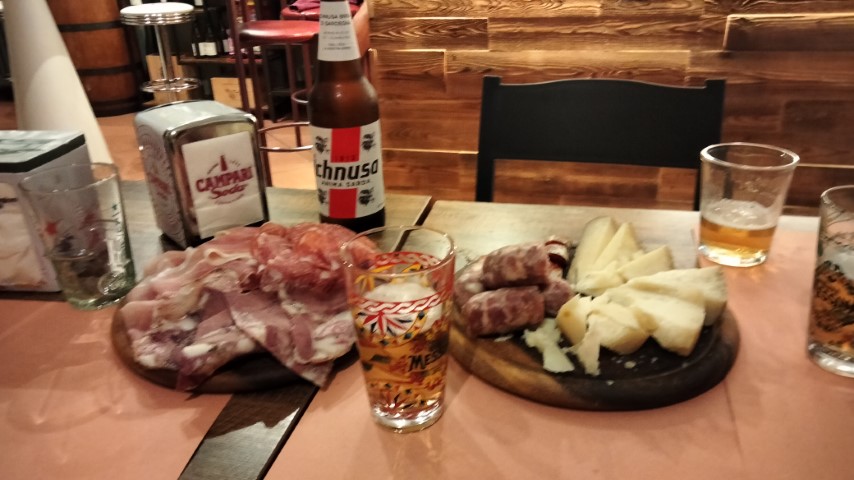 Als Daniele vom Fussballtraining zurück kam und meine Freundina auch wieder dabei war, bemerkten wir, dass wir noch nichts zu Abend gegessen hatten. Die Metzgerei hatte leider schon zu. Das war aber kein Problem denn die Besitzer der Bar und der Metzgerei sind ja Brüder. So ging Marco, der Besitzer der Bar, einfach mal rüber und holte uns etwas. So enstand eine üppige und feine Fleischplatte. Danach liesen wir bei ein paar Bier und vielen Worten den Abend ausklingen. Das Nach Hause gehen war nicht so einfach, denn wir mussten uns von allen verbaschieden, das tut schon etwas weh. Am nächsten Tag sollte es wieder zurück in Richtung Norden gehen.