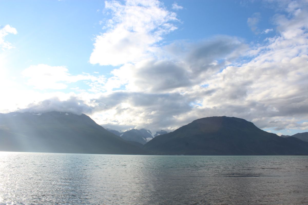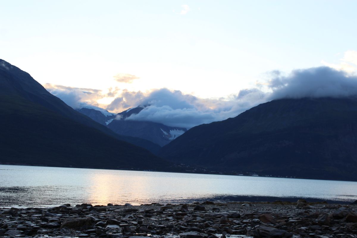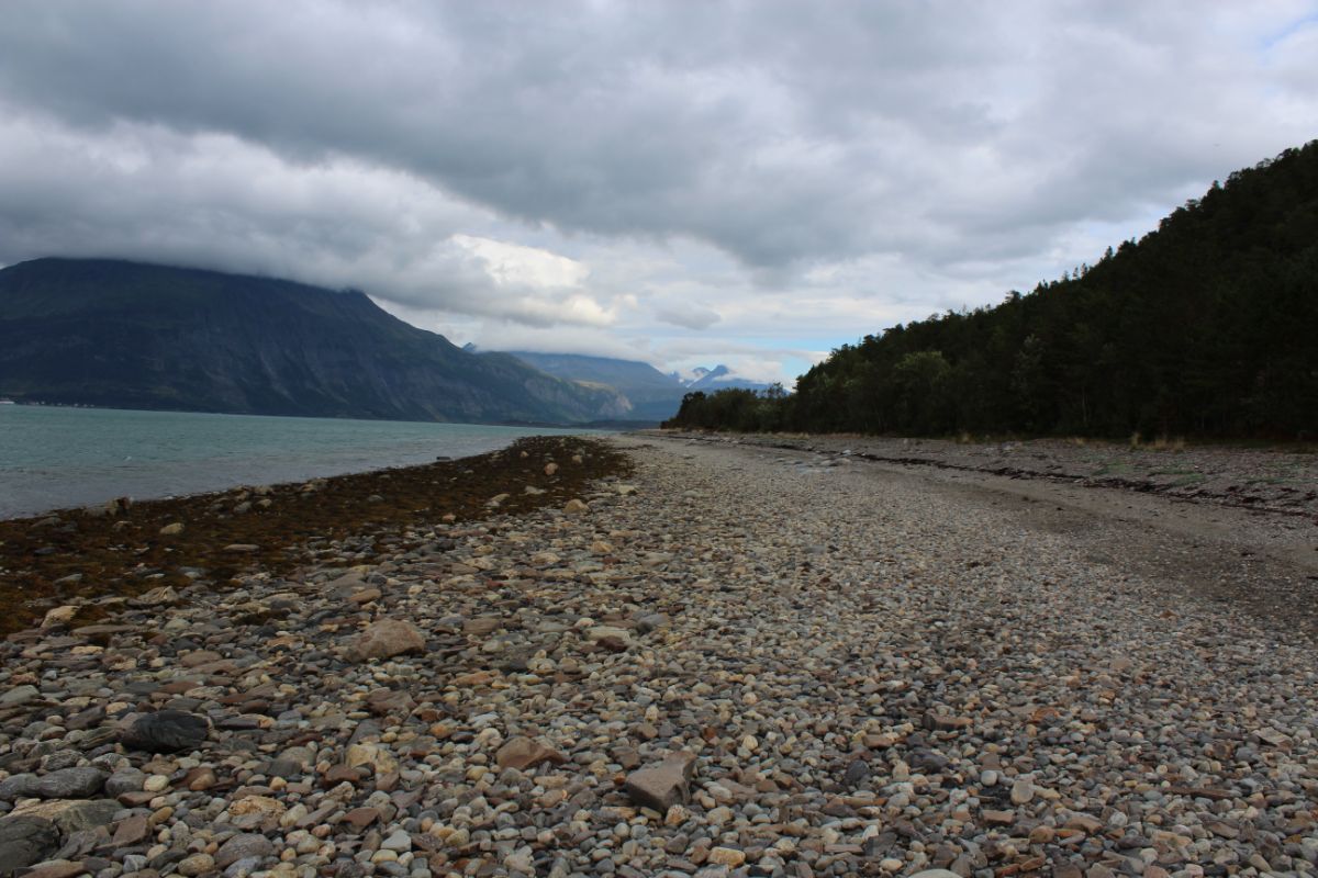 Am Abend übernachte ich an einem wunderbarem fjord, kuz vor dem Dorf Storfjord. Hier heisst alles Blablabla-fjord. Es ist wunderschön, man sieht Schneeberge, Gletscher und ist gleichzeitig an einem strand. Während ich mein Zelt aufbau kann ich wahle beobachten, leider waren sie zu weit weg um sie fotografieren zu können. Der ganze Tag war trocken ausser als ich Zelt lag fieng es an zu regnen.
