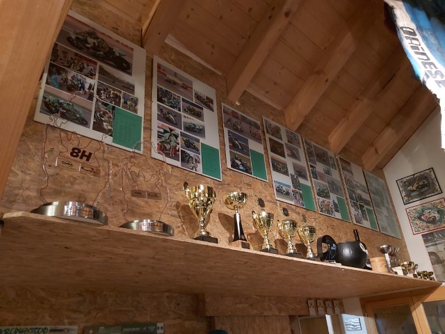 Nein, hier oben ist dann recht voll und es sind dann 20 bis 30 Menschen hier in der Bar, die unsere Langstreckenrennen aus dem bernischen Limpbachtal mitverfolgen. Hämpu grilliert unten und meine Mutter ist hier oben am Buffet. Die Leute aus dem Dorf rufen vor dem Rennen meiner Mutter an und teilen, mit was sie mitbringen. Einer bringt Zopf, ein anderer bringt Lachs, das ist dann ein halbes Dorffest hier oben. Während einem Rennen ist hier durchgehend offen, du hast teilweise Leute die mit den Schlafsäcken kommen und hier auf einem Campingstuhl oder Liegestuhl schlafen. Manchmal hat es auch draussen ein Camper oder zwei. Je nachdem zieht meine Mutter durch. Wenn um halb 6 Uhr morgens der letzte geht und die ersten um halb 7 wieder kommen, dann geht sie zum Becker hinten in die Backstube rein und holt Gipfeli. Klar in Bol d'Or dieses Jahr(das Team Bolliger musste abbrechen), hatte sie dann irgendwann Feierabend gemacht. Grundsätzlich ist es immer bedient auch, wenn wir nicht oder nicht mehr fahren. Sogar in Barcelona wo es keine offizielle Liveübertragung gab, hatten wir eine Cam in der Box, da konnte man in Hämpusbar Livebilder aus der Box sehen und hatten einen gemütlichen Abend. Und auch Suzuka schauten wir hier und es waren am Schluss trotzdem 10 oder 15 Nasen da, obwohl wir nicht am Start waren.