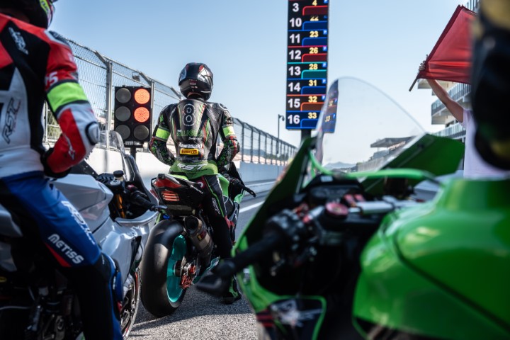 Ja, haargenau. Der einzige Unterschied, in der Superbike muss das Motorrad 24 Runden halten, bei uns 24 Stunden. Deshalb haben wir keine Superbikemotoren drin, weil die halten die in der Regel 1000 bis 1500 Kilometer und dann sind die Motoren durch.