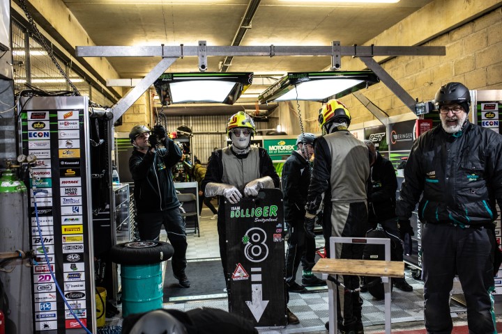 Mechanische hoffentlich selten. Es muss einfach halten und du bereitest das Motorrad ja mit bestem Wissen und gewissen vor, das es durchhält. Dein grösster Gegner, bist ganz sicher du selber. Müdigkeit, Unzuverlässigkeit, sind Faktoren die Einfluss haben. Es ist natürlich so wenn morgens um 4 Uhr das Motorrad reinkommt, muss man das Rad genau gleich gut anziehen, wie man das am Nachmittag um drei Uhr gemacht hatte. Das ist so das, wo man als Teammitglied am meisten zu kämpfen hat. Mir fällt es weniger schwer, ich habe schon ein paar 24 Stunden Rennen hinter mir. Jemand der das erste Mal dabei ist, hat es schon schwieriger. Es ist das körperliche aber es hat auch mit dem Mentalen zu tun. Dann kommen die Wetterbedingungen dazu. Die Temperaturen als Beispiel, in Le Mans geht es nachts gegen die null Grad. Für die Fahrer mit dem Fahrtwind sind das dann Minusgrade. Auch mit dem Pneu ist es dann nicht ohne. Deshalb haben wir Mechaniker Heizwesten an. Damit wir einen etwas warmen Körper haben, weil du weisst wie es ist, wenn du kalt hast, es ist einfach ein «Schissdräck». Man kann auch nicht unendlich Elektroheizöfen einstecken, weil irgendwann haut es die Sicherung raus. Wiederum in Barcelona herrschte die ganze Nacht über 25 °C, da ging man in der Box drinnen fast kaputt.