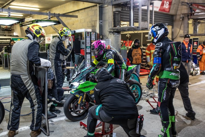 Kevin: Wir sind das Team Bolliger, aus dem bernischen Limpbachtal. Wir fahren Langstreckenmeisterschaft, das sind 8, 12 oder 24 Stundenrennen. Das Ganze mit Motorrädern. Es ist eine Seriennnahem Weltmeisterschaft. Wir fahren eine Kawasaki Ninja ZX 10, welche wir beide beim Kawasakihändler unseres Vertrauens kaufen können. Hat also nichts mit Prototypen zu tun. Wir sind das älteste Team in der Weltmeisterschaft und haben dieses Jahr die 43. Saison abgeschlossen. In dieser Zeit sind wir zwei Mal Vizemeister geworden, zwei Mal dritter und haben mehrere top fünf Ergebnisse. Dieses Jahr sind wir 6. geworden in der WM. Es ist in dem Sinn nicht schlecht gelaufen und das Ziel von Top fünf, haben wir knapp verfehlt.