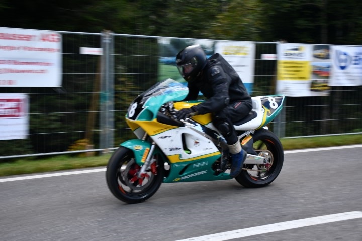 Nein, ich kenne keinen Fahrer, der das möchte, aktuell. Für Hämpu sowieso nicht, der ist 70. Der Horst(Saiger) ist fertig, Roman(Stamm) wollte nie und meine drei Fahrer, die ich jetzt habe, die möchten das auch nicht. Was vielleicht mal sein kann ist, ein Bergrennen wie am Schallenberg oder vielleicht sagt mal einer komm wir gehen nach Macau, was auch Roadracing ist, was auch gefährlich ist aber nicht so gefährlich wie auf der Isle of man. Wie gesagt das liegt in der Zukunft. Aber eines ist klar für Road Racing wird niemand überredet.