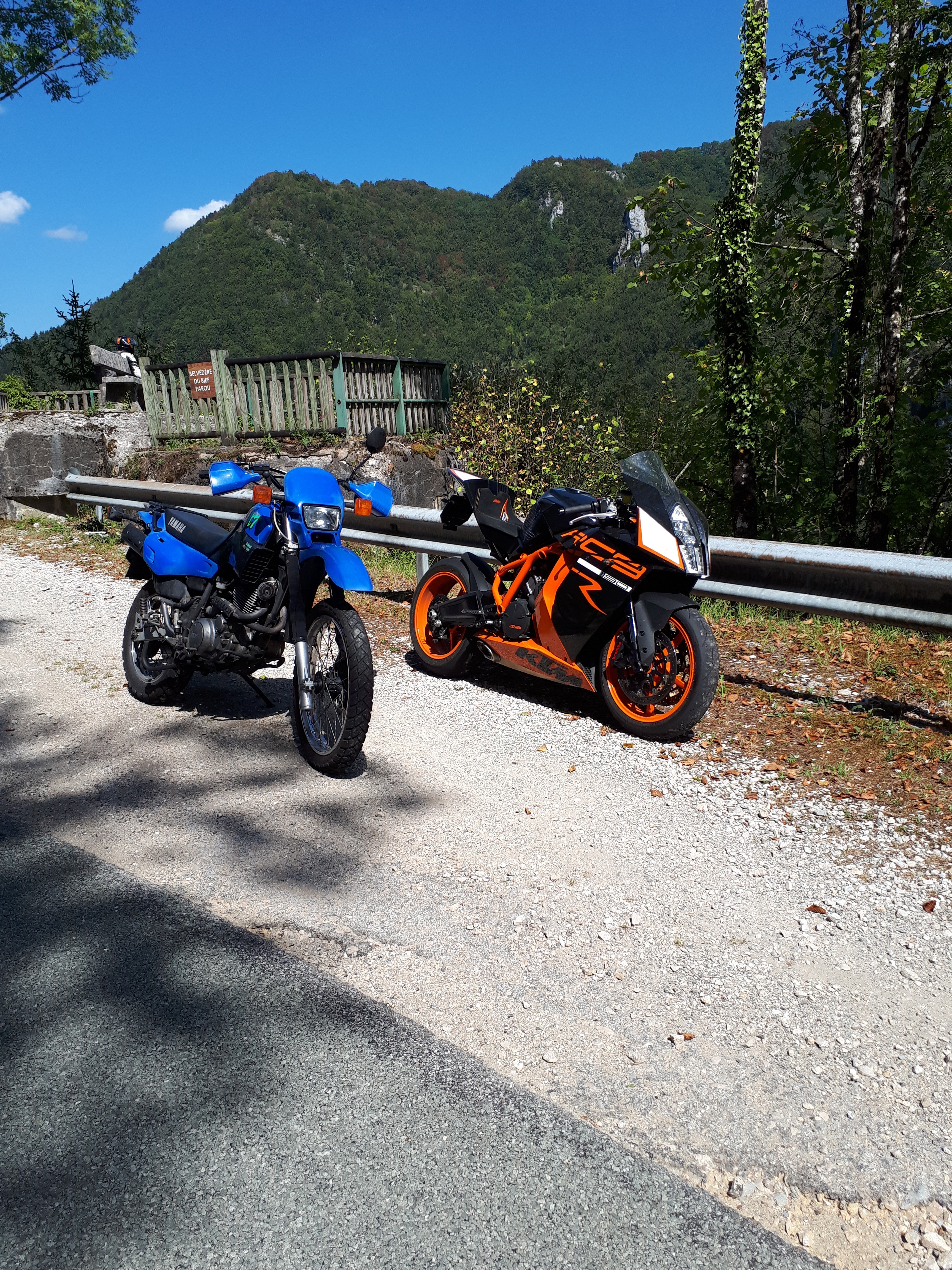 Eigentlich hätten wir an diesem Wochenende Jubiläumsausflug mit der Guggenmusik gehabt, aber Corona sei dank, wir blieben zu Hause. So hatte sich die Motorradschlampe und ich dazu entschieden am Nachmittag uns um die Angststreifen an der XT zu kümmern. Er nahm seine KTM RC8R mit, eine Schönheit die ihresgleichen sucht.