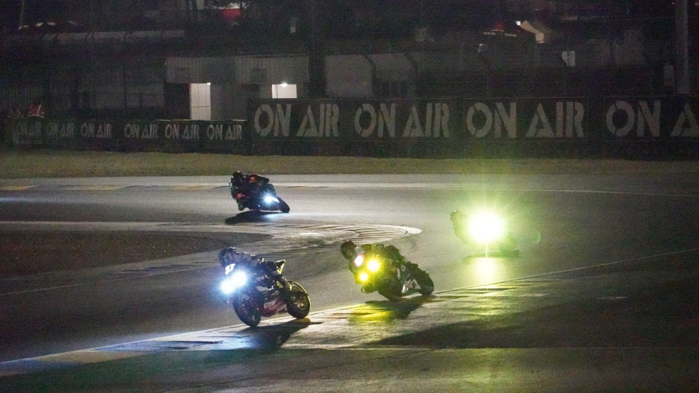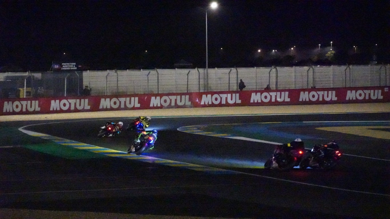 Bis kurz vor 18 Uhr verbrachte ich die Zeit in der Box. Der erste Kaffee wurde verschlungen, wie viele es wohl noch werden? Dann kam Michèle von Kawasaki Schweiz zu mir, wir kennen uns von den vergangenen Kawasaki-Tests. Sie meinte, sie können noch in ein paar andere Boxen reinschauen, ob ich mit wollte. Ich sagte natürlich gleich zu und so zogen wir los. Zuerst gingen wir zu Yart, dem späteren Gewinner des 24-Stunden-Rennens in Le Mans. Eine ganz andere Box als bei Bolliger, aber nicht weniger ordentlich oder organisiert. Es war auch eine Ruhe zu spüren, man merkte, die wissen, was sie machen. Wir warteten den Boxenstopp ab und gingen dann weiter zu Kawasaki Webike Trickstar. Es ist das Kawasaki-Werksteam und das einzige Team, das mit der neuen ZX-10R an den Start ging, was an den Winglets einfach zu erkennen war. Auch diese Box sah wieder ganz anders aus, wenn auch nicht etwas chaotischer. Trotzdem reichte es am Schluss für den dritten Rang. Michèle nahm mich dann noch mit zum Kingtyre Fullgas Racing Team, auch ein Kawasaki-Team. Hier waren wir aber nicht nur wegen dem Einblick in die Box, dazu später. Denn hier sahen wir einen etwas anderen Boxenstopp, das Team hatte kein Schnellwechselteam wie zum Beispiel das Team Bolliger und musste bei jedem Boxenstopp die Kette neu «einfädeln». Und genau das dauerte etwas mehr Zeit.