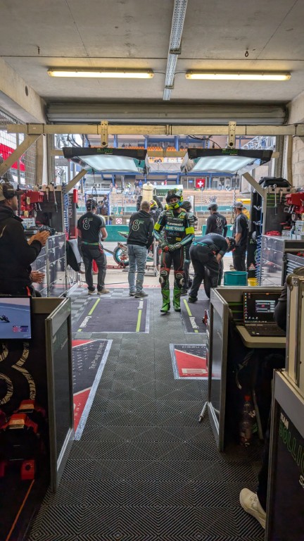 Mit vier Fahrern ist das Team Bolliger angereist. Nur drei durften am Rennen teilnehmen, der vierte, Kylian, war während dem Rennen arbeitslos. Besser gesagt wäre. In der Langstrecken-WM helfen alle einander. Ein anderes Team hatte einen Fahrerausfall und so wurde Kylian an dieses ausgeliehen. Leider hatten sie nach ein paar Stunden einen Ventilschaden, den sie nicht repariert kriegten und Kylian hatte nun definitiv Feierabend.