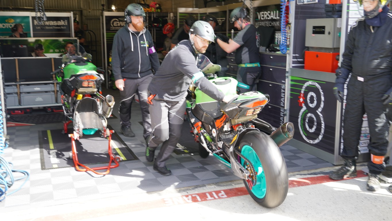 Das Qualifying vergeht eigentlich unspektakulär. Die Professionalität des Teams beeindruckt mich nach 5 Tagen immer noch, ich kann euch versichern, das sieht hier nicht in jeder Box so aus. Wenn ich wiedermal eine Schreib- oder Videoblockade habe, spaziere ich durch die Boxengasse, das tut der Seele gut und ist durchaus interessant, wenn man in die fremden Boxen reinschauen kann. Da fällt einem zum Beispiel auf, dass auch die Werkteams murksen können.