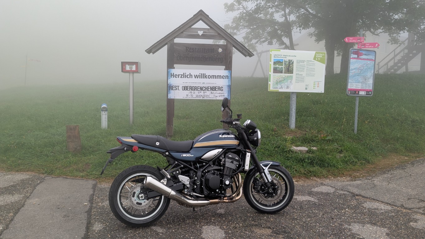 Ich fuhr an Kuhherden vorbei, und der Nebel wurde immer dichter. Die Z900 RS passte perfekt in diese Szenerie – ein Motorrad, mit dem man die Landschaft geniessen kann, ohne schnell fahren zu müssen. Sie ist ein Motorrad wie früher: schlicht, charakterstark und ohne unnötigen Schnickschnack.