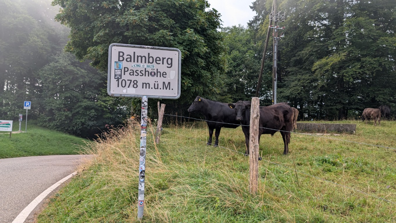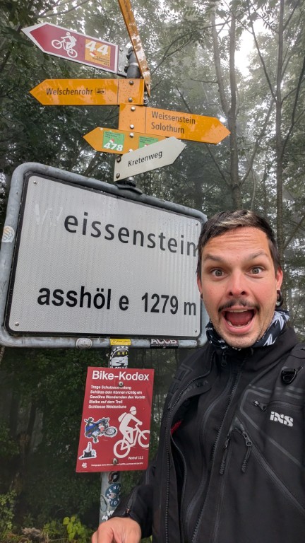 In Oberdorf bog ich links ab, um auf den Hausberg der Solothurner zu gelangen: den Weissenstein. Der Nebel war noch immer dicht, und ich musste das Tempo drosseln. Zum Glück trage ich das Panorama in meiner Erinnerung. Am Passschild machte ich eine kurze Pause und genoss die Morgenruhe.