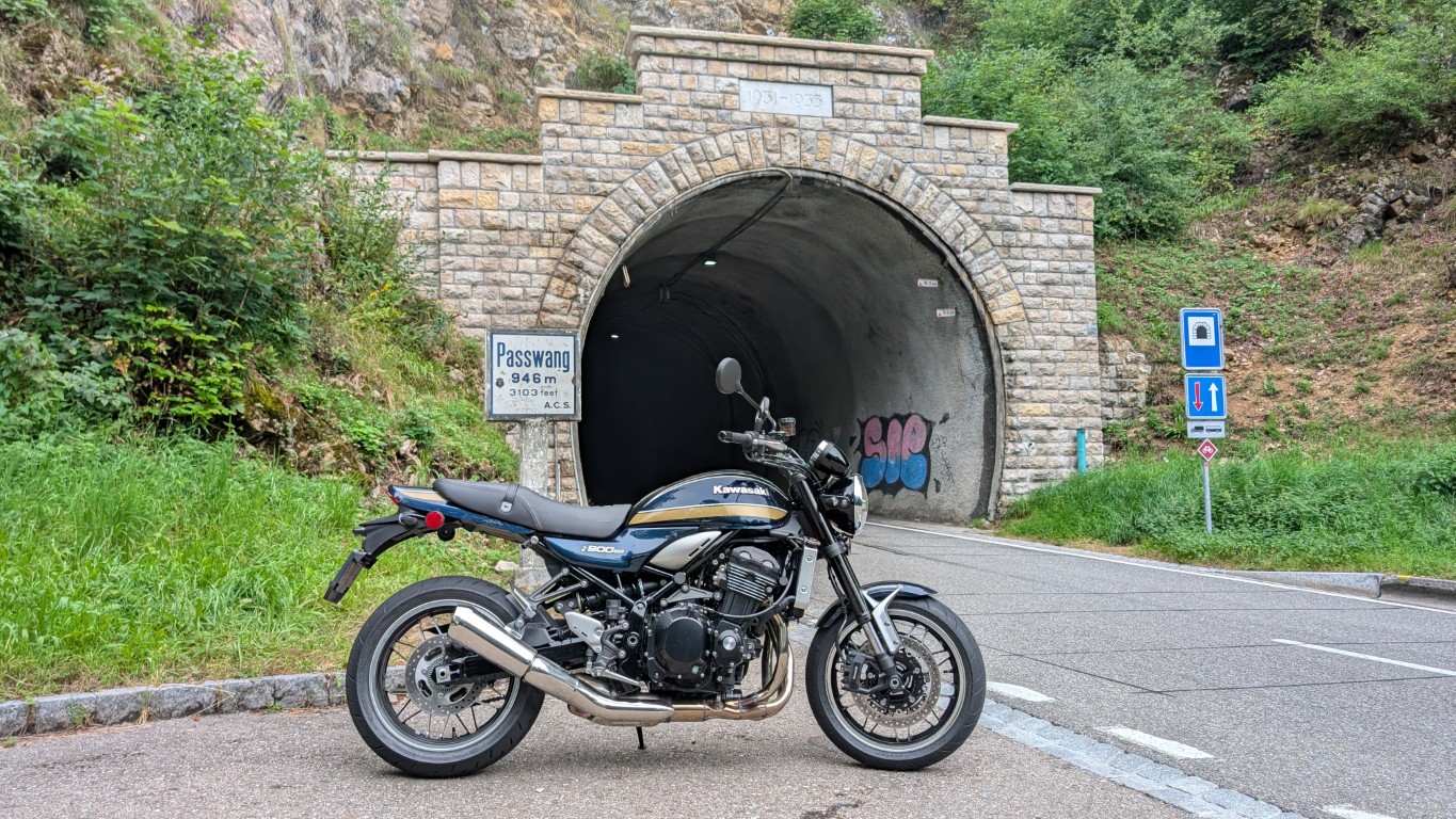Zum Schluss stand noch der Passwang auf dem Programm. Die asphaltierte Motocrosspiste dort erwies sich für die Z900 RS als schwierig – es schüttelte mich durch.