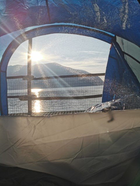 Am nächsten Morgen wurden wir von einem wunderschönen Sonnenaufgang geweckt. Wir befanden uns in einer kleinen Bucht, und die Sonne stieg hinter den Hügeln auf, um direkt auf das Meer zu strahlen. Es gab keinen schöneren Weg, aufzuwachen.