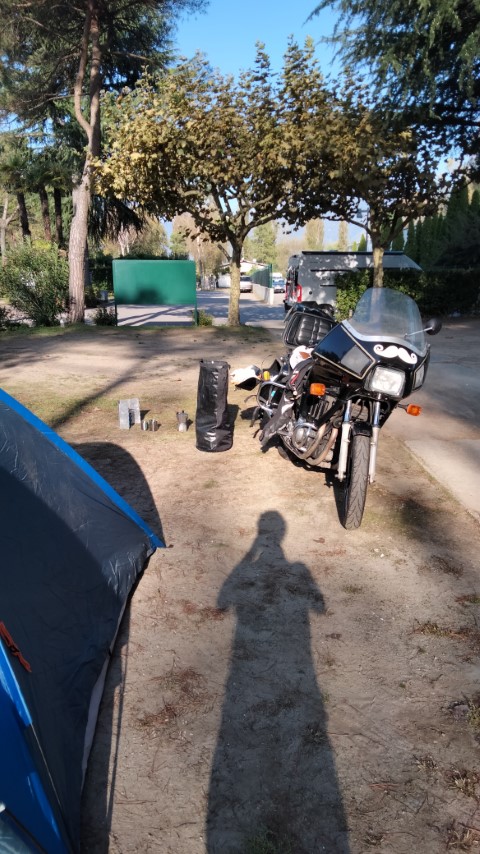 Nachdem wir unser Motorrad entladen und das Zelt direkt über dem Meer aufgebaut hatten, entschieden wir uns wiederum gegen den Gaskocher und für das Restaurant auf dem Campingplatz. Zum Abendessen gönnten wir uns Muscheln und Meeresfrüchte, wirklich lecker. Noch während des Aperitifs entschlossen wir uns, einen weiteren Tag hier zu verbringen, und fragten gleich an der Rezeption, ob wir noch eine Nacht bleiben dürfen. Uns wurde die Erlaubnis erteilt, was uns sehr freute, ich denke das freute auch unsere Suzuki GS, die mit bestem Blick auf das Meer geparkt war.