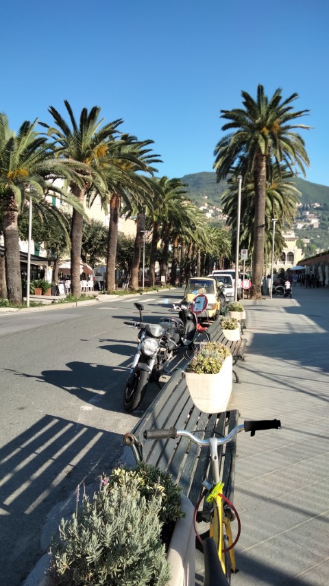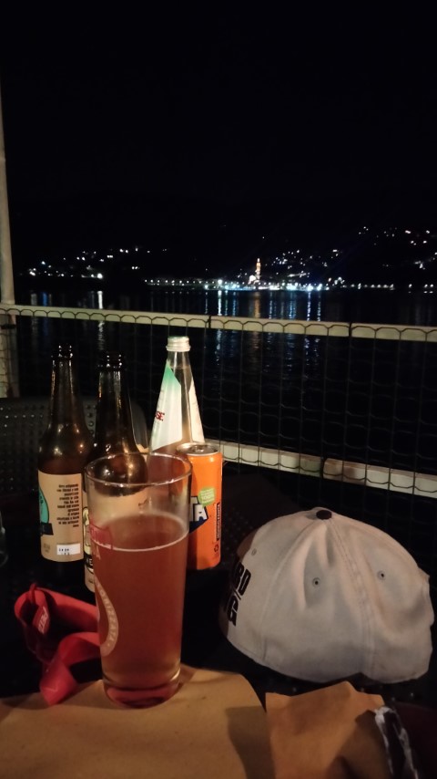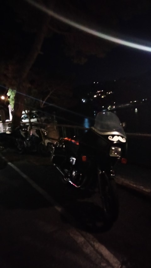 Der Tag, in Locarno auf dem Campingplatz Delta, begann mit einem wunderschönen Sonnenaufgang über dem Lago Maggiore, einer Tasse Bialetti-Kaffee und großer Vorfreude, denn es ging endlich in Richtung Italien und das Meer. Nachdem wir die Suzuki GS 1100 GK beladen hatten, ging es endlich los. Meine Freundin und ich entschieden uns zunächst, dem Lago Maggiore auf der linken Seite in Richtung Süden zu folgen. Es war eine wunderschöne Strecke entlang des Sees und der Berge. Bald waren wir in Italien, was sich nicht nur am Zollhaus, sondern auch an zwei weiteren Dingen bemerkbar machte: dem Verkehr und dem Straßenzustand. Von diesem Zeitpunkt an wurden wir regelmäßig von Rollern überholt und mussten vielen Schlaglöchern ausweichen. Kurz nach der Grenze war es bereits Mittag, ich spürte es, und deshalb suchten wir ein Restaurant auf. Wir fanden eines direkt am See, wo ich sogar meine Maschine parken konnte. Das Restaurant sah nicht besonders gut aus, aber wir hatten Hunger, besonders ich, und das kann problematisch werden. Das Essen war viel besser, als das Restaurant von außen den Anschein erweckte, und zur Freude meiner Freundin gehörte auch ein Hund zum Restaurant. Als ich auf die Toilette wollte, musste ich durch einen Gemeinschaftsraum der Besitzerfamilie gehen, in dem ein Fernseher lief. Es wurde das MotoGP Rennen in Japan übertrage oder besser gesagt der Abbruch des MotoGP Rennen in Japan. Ich fühlte mich richtig wohl und freute mich umso mehr, wieder in Italien zu sein. Während des ersten italienischen Kaffees suchten wir uns einen Campingplatz aus, direkt am Meer, in der Nähe von Genua. Danach setzten wir unsere Fahrt entlang des Lago Maggiore fort. Eigentlich war alles wunderbar und purer Urlaub, wenn da nicht der Verkehr gewesen wäre. Die luftgekühlte Suzuki GS hatte überhaupt keine Freude am Stau. Hinzu kommt, dass die Ventildeckeldichtung nicht ganz dicht ist und die GS etwas schwitzt. Das bedeutet, wenn die GS eine gewisse Temperatur erreicht, insbesondere im Stau, fängt sie an zu rauchen. Das geschah ein oder zwei Mal, als wir am See entlang fuhren. Daher freute ich mich fast ein wenig, als die Autobahn kam.