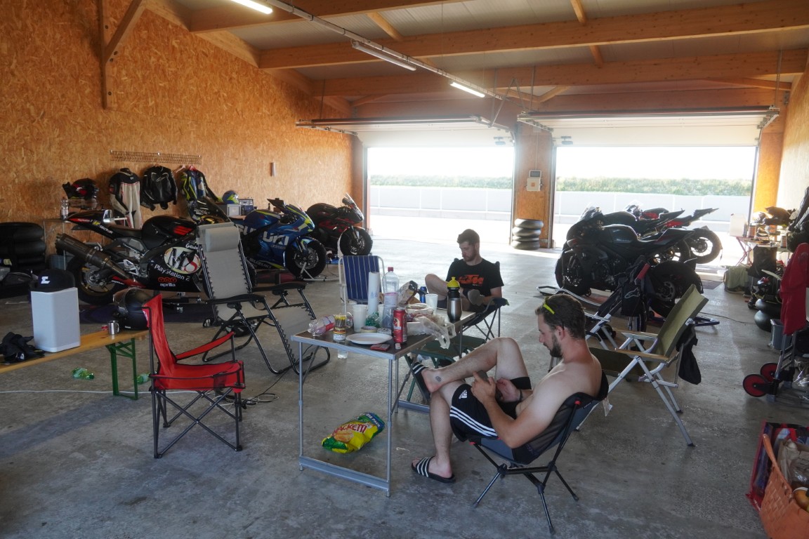 Da Joel und ich in der langsamsten Gruppe waren, ging es für uns direkt nach dem Fahrerbriefing los. Das hieß: schnell in den Kombi und ab aufs Motorrad. Da ich oft – aber nicht immer – zu früh dran bin, musste ich jeweils am Ausgang der Boxengasse warten. Hier stieg der Blutdruck noch etwas weiter, aber auch die Vorfreude.
