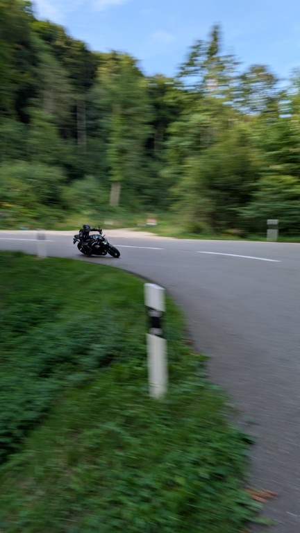 Als wir die Bikes abholten, konnten wir schon die ersten Kurven auf dem Nachhauseweg geniessen, und es war ein Genuss, aber mehr zu unseren Einschätzungen später. Wir fuhren von Egerkingen über Langenthal auf den Passwang und von dort aus nach Hause. Am Samstag ging es an den Gempen, um ein paar coole Fotos und Videos zu schiessen, danach über Hochwald in den Eigen. Nach ein paar weiteren Fotos hatten wir uns einen Kaffee im Restaurant Eigenhof verdient. Der Geschmack vom Kaffee Lutz brachte uns fast dazu, an andere Sachen als Töff fahren zu denken, aber wir hatten zwei tolle Motorräder zu testen. Das war Grund genug, seriös zu bleiben. Die Ausfahrt ging weiter über Himmelried und Nunningen nach Breitenbach. Luki und ich trennten uns, und für mich ging es wieder zurück über Nunningen, Hochwald und den Gempen.