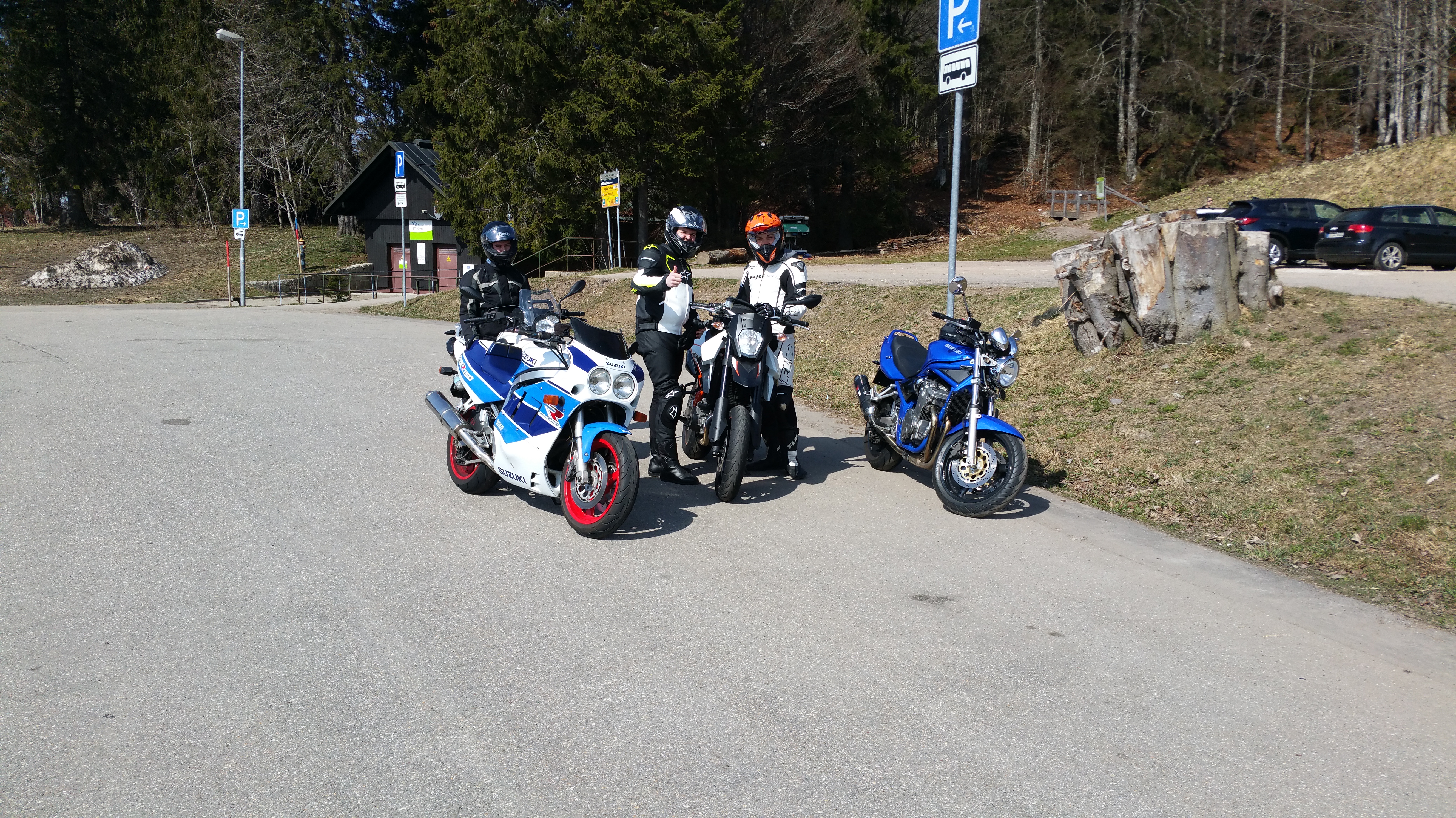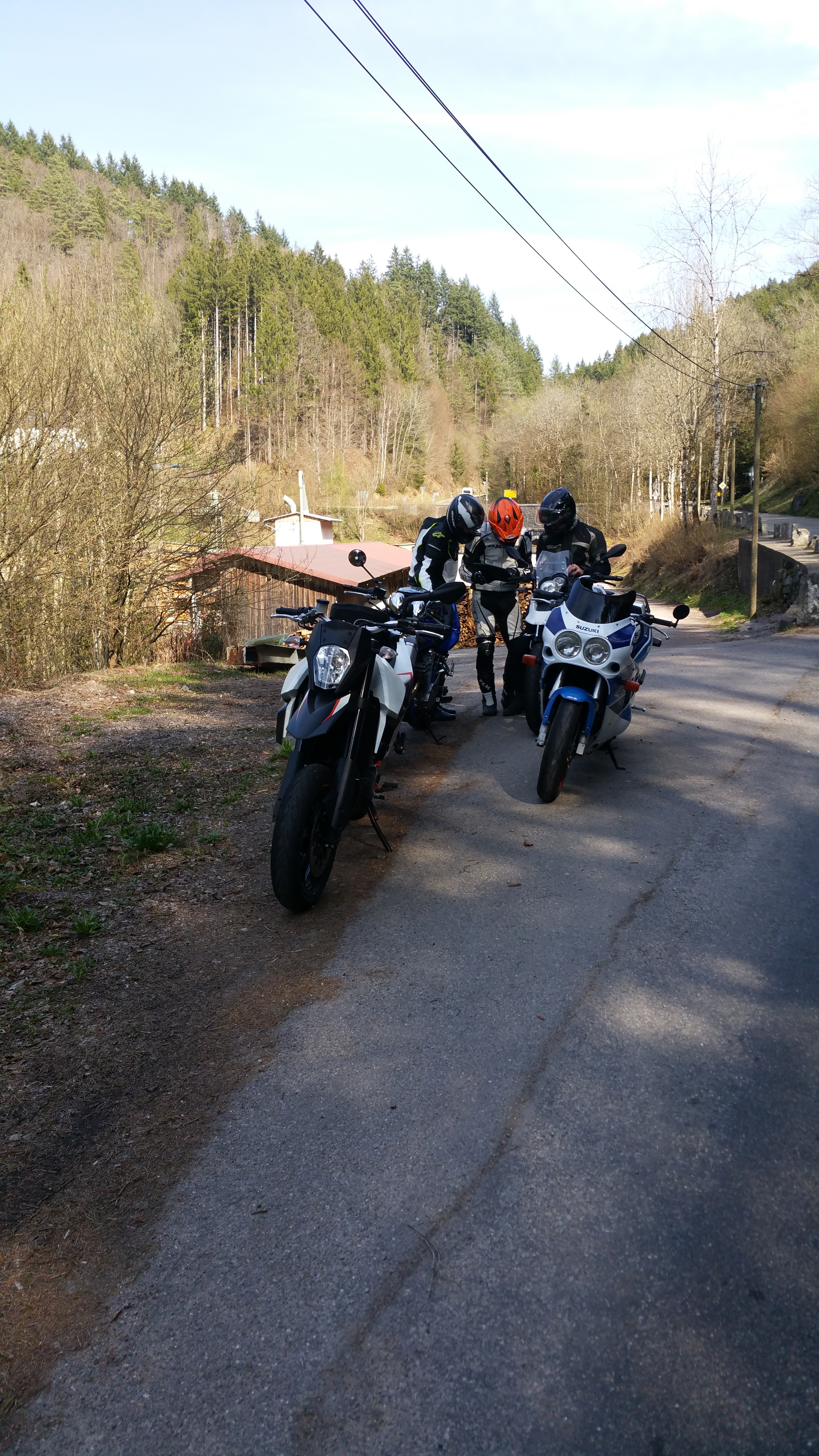 Die Strecke war wunderbar es gab grosse lange Kurven aber auch kleine bissige. Bei den Letzteren hatte ich mit meiner Gixxer noch etwas Mühe wobei die langen Kurven super gingen. In der Gruppe kamen wir ansonsten gut vorwärts, das Niveau war bei allen etwa gleich hoch. Ausser die auf 25 kW kastrierte Bandit hatte manchmal beim Hang hoch rasen etwas mühe. Der Verkehr war halb so stark wie sehr wahrscheinlich zur gleichen Zeit in der Schweiz. Das heisst es hatte auch halb so viele Idioten und Sonntagsfahrer. Somit blieb unser Blutdruck auch in einem angenehmen Bereich. Der Schwarzwald lässt sich wirklich jedem empfehlen denn wenn du ein ein paar Mal dort gefahren bist, weisst du wie man die unterschiedlichsten Kurven fährt. Und du wurdest währen dieser Zeit nie von Rasern knapp überhollt oder von schweren Zweizylindern aufgehalten. Es war ein super Tag und nun freuen wir uns auf unser Feierabendbier.